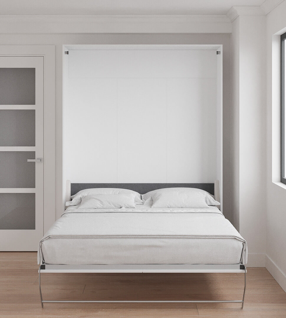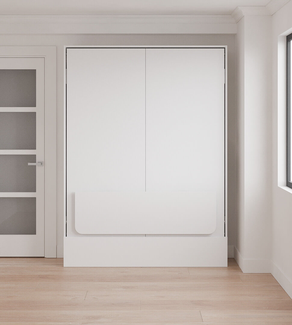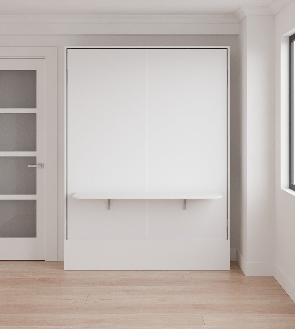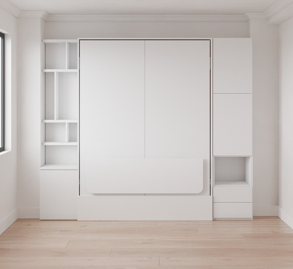 D - Loft Bed Queen Size with Table, Wardrobe and Bookcase Set