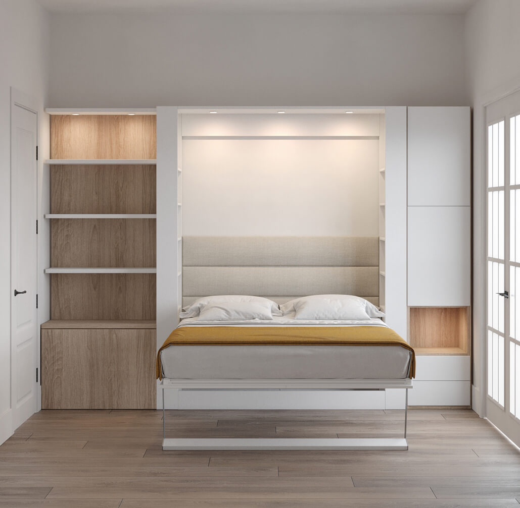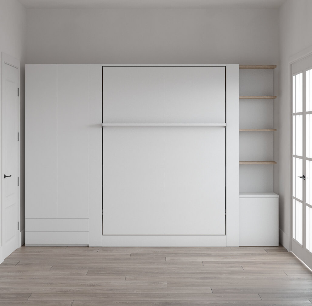 D - Nova Queen Wall Bed with Bookcase and Wardrobe