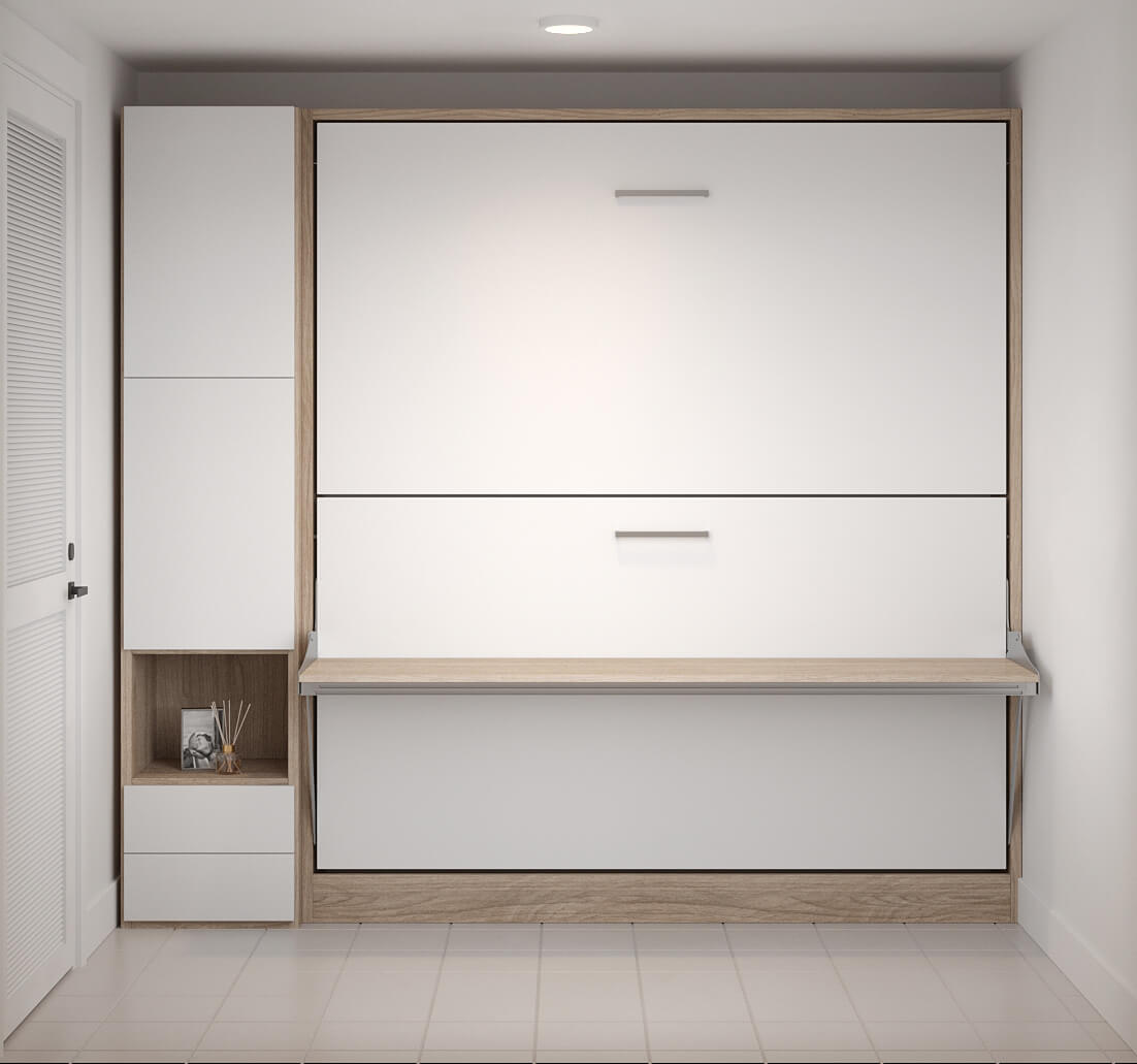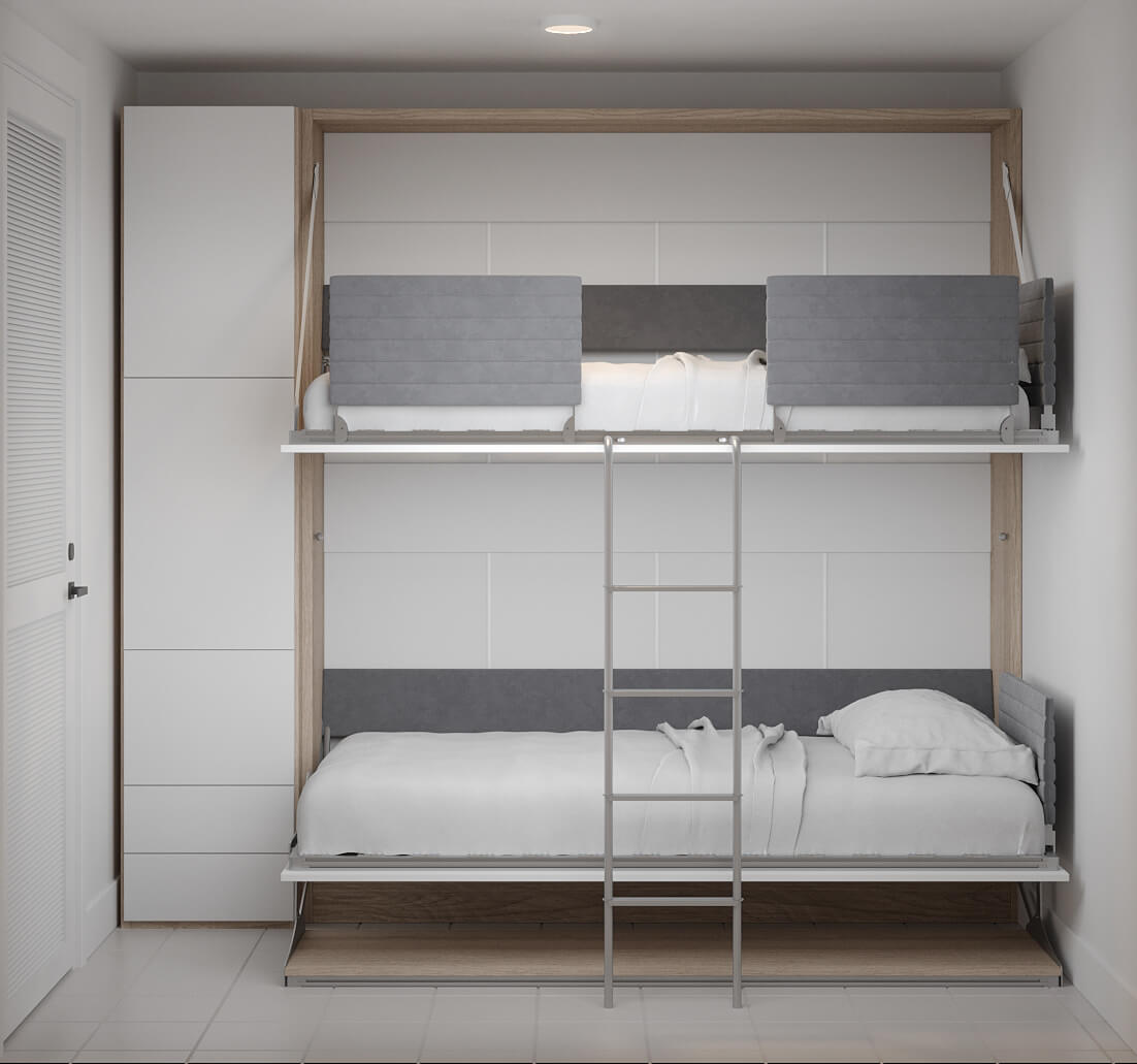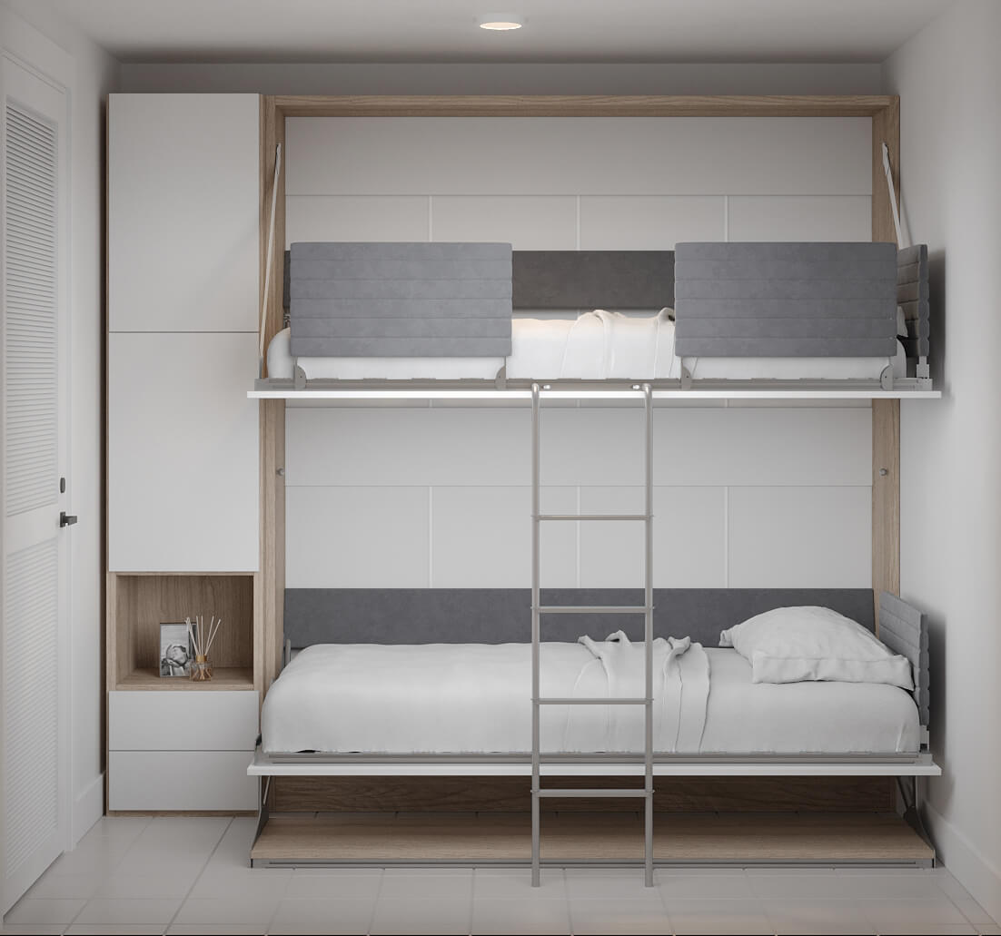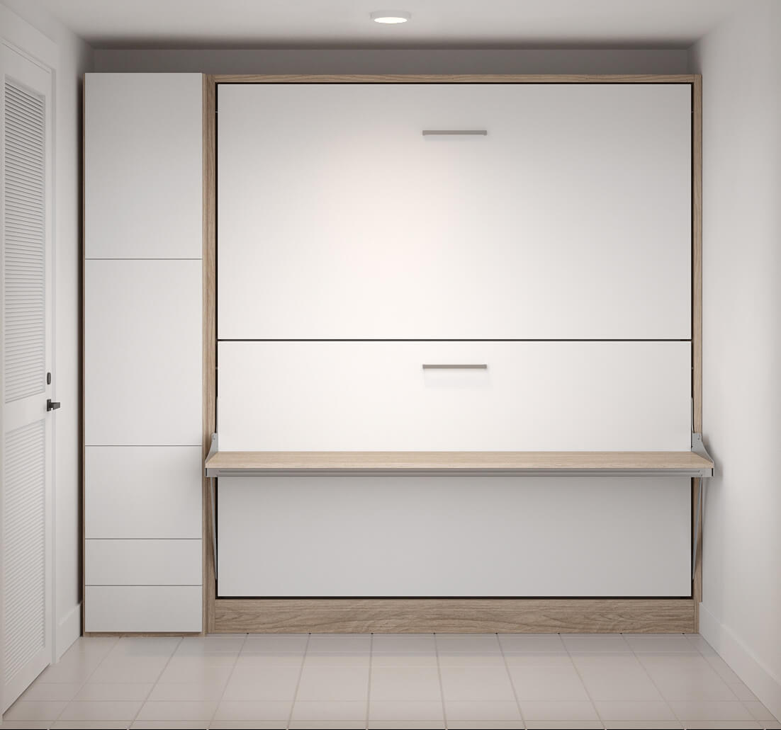 D - Pensiero Twin Wall Bunk Bed with Table and Bookcase