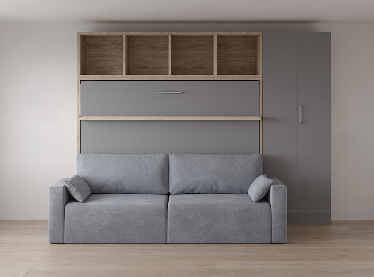 D - Royal Horizontal Queen Wall Bed with Bookcase and Wardrobe