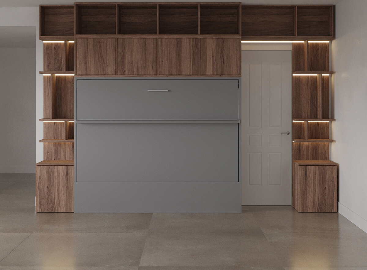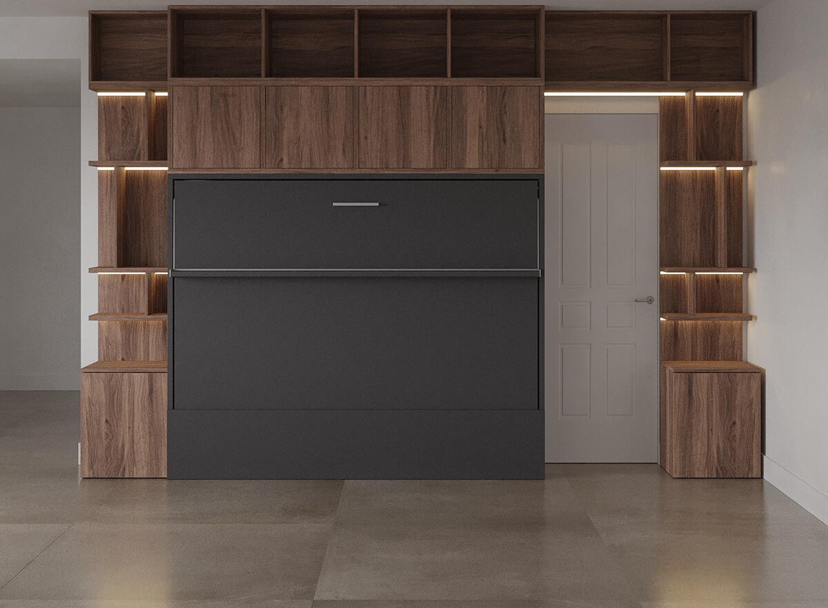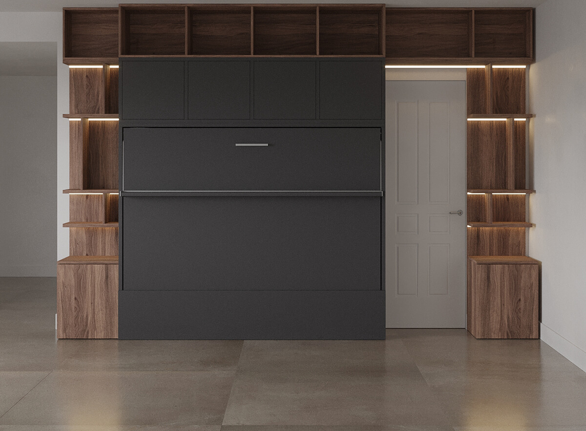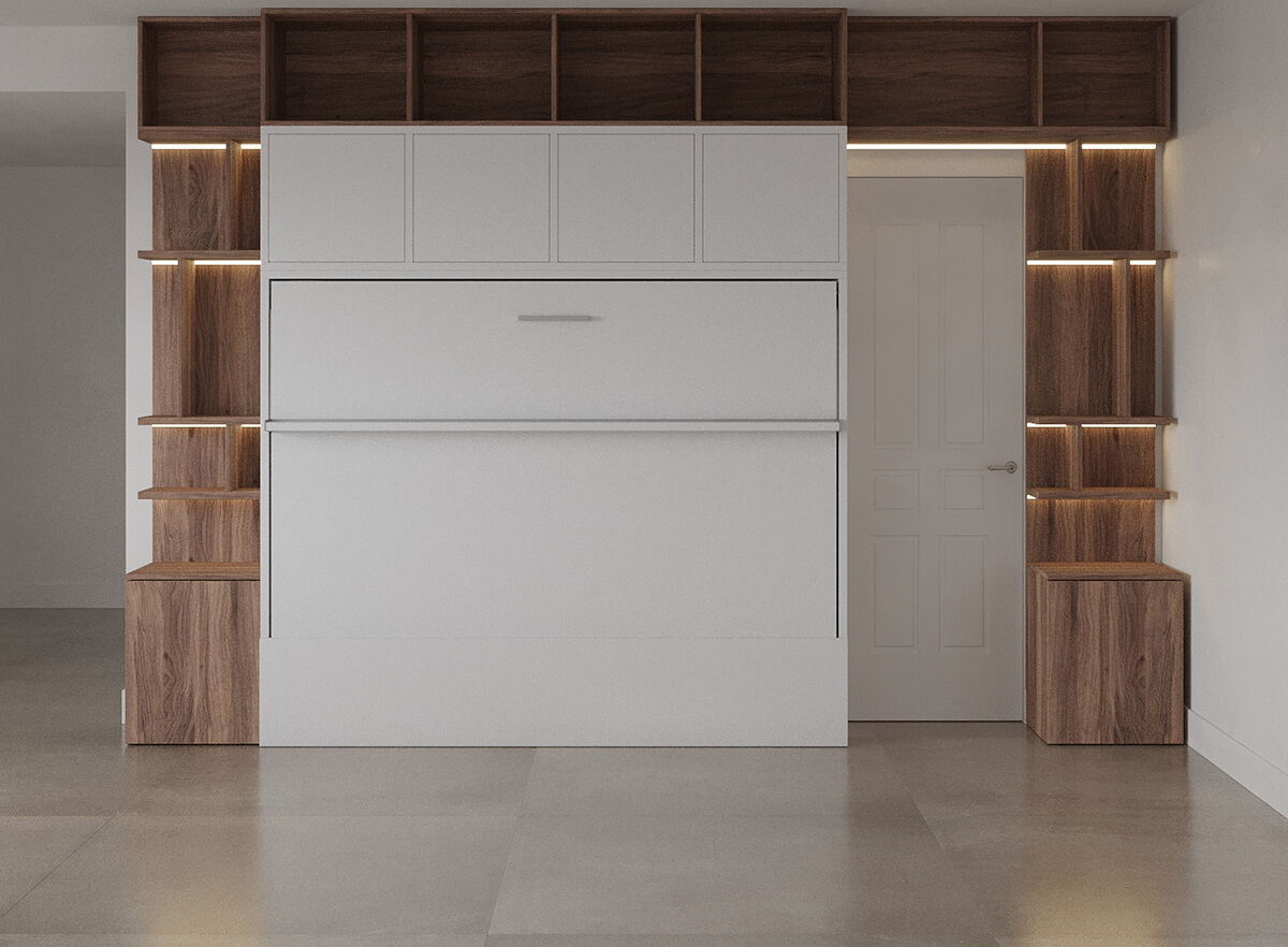 D - Royal Horizontal Queen Wall Bed with Bookcase Set