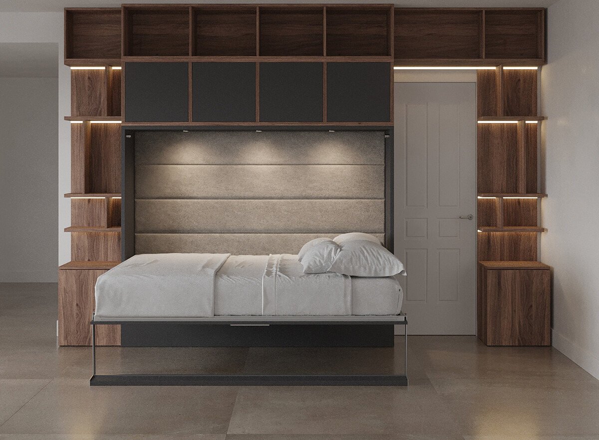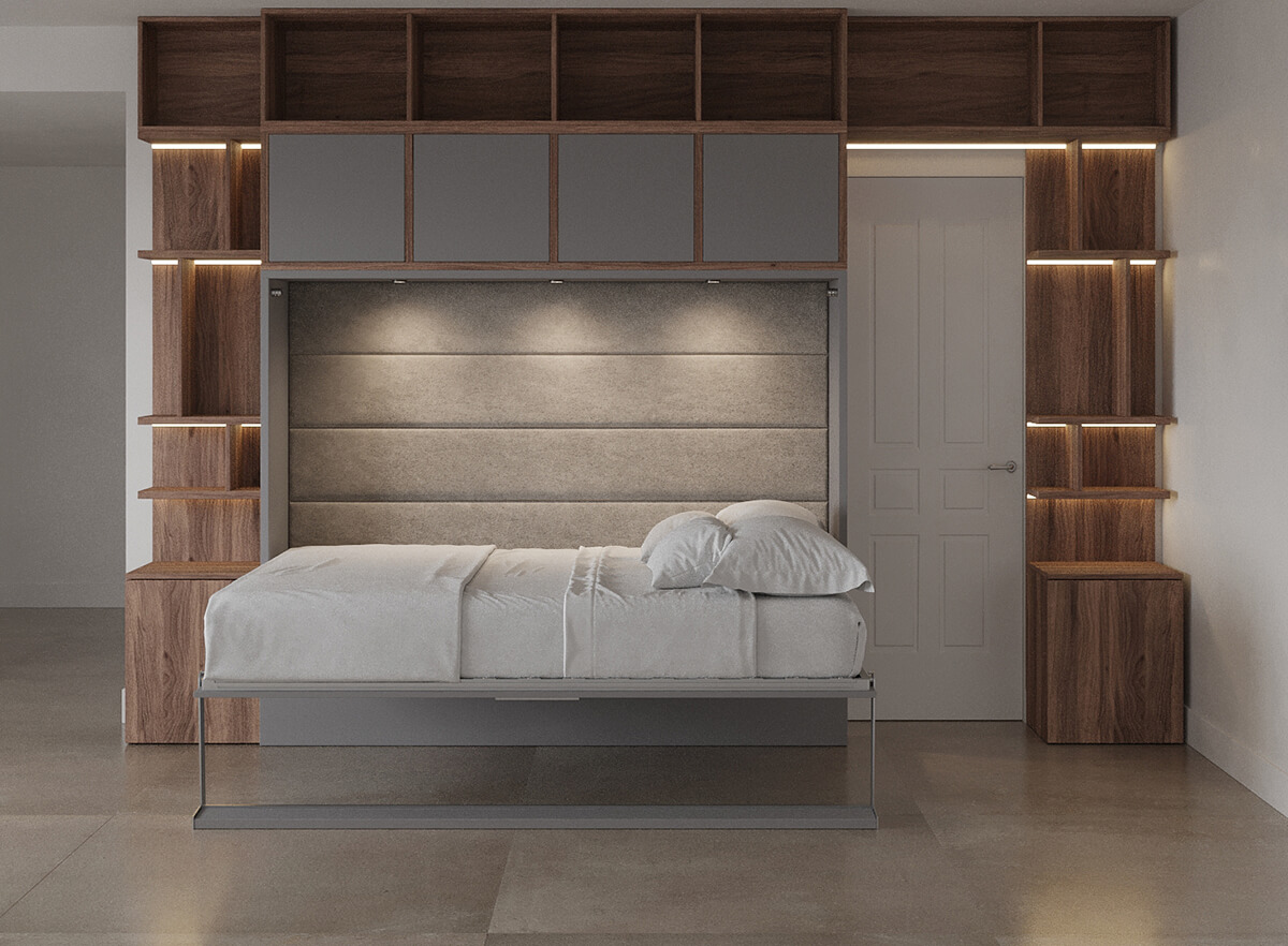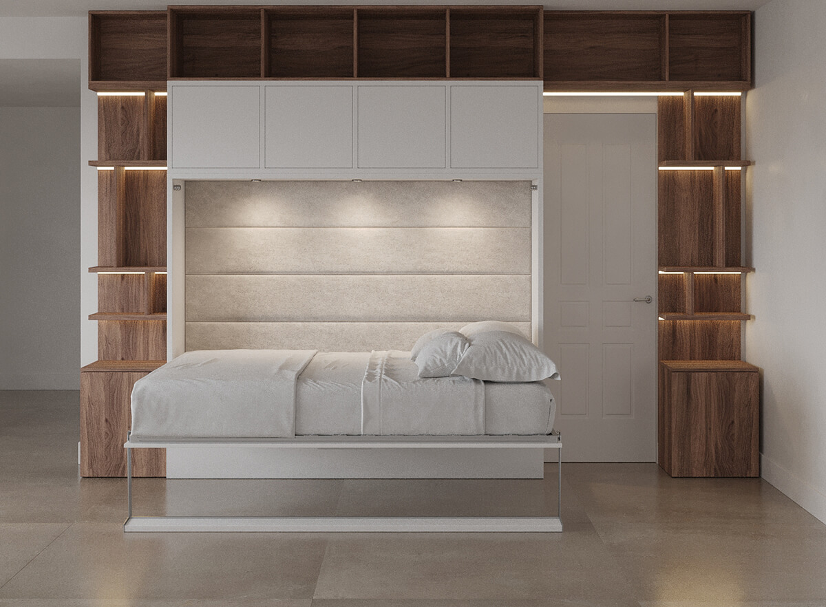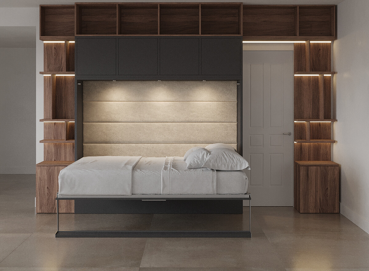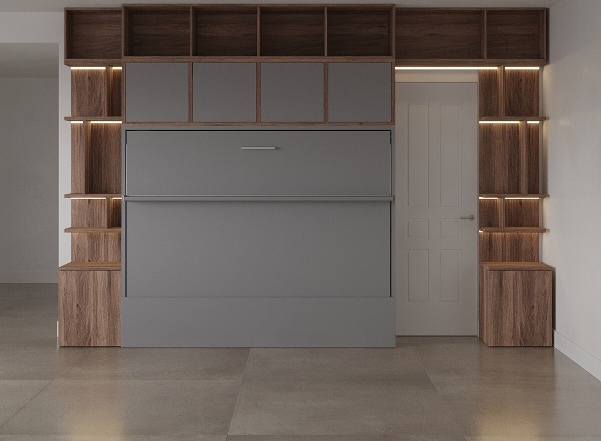 D - Royal Horizontal Queen Wall Bed with Bookcase Set