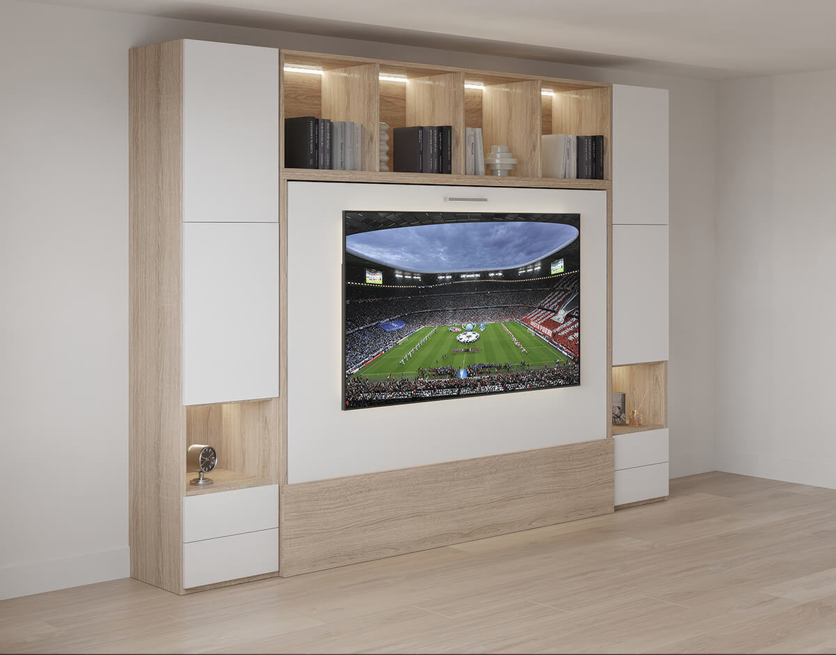 D - Royal Horizontal Queen Wall Bed with Convertible Wardrobe and Bookcase