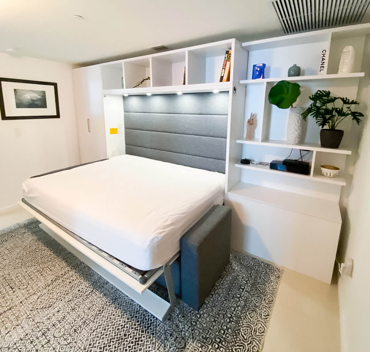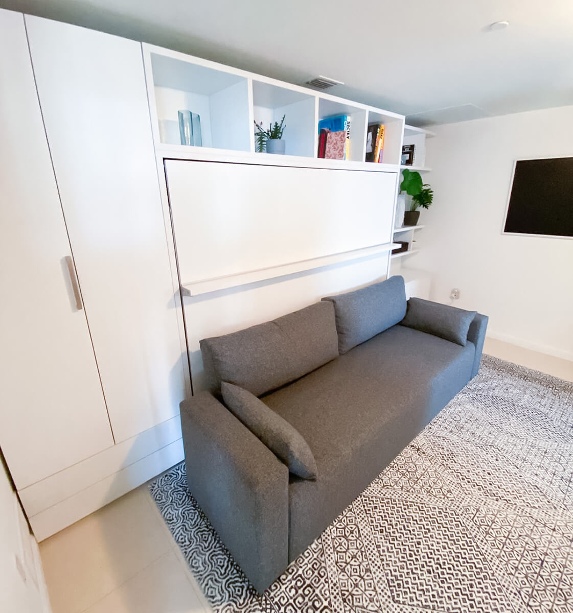 Royal Horizontal Queen Wall Bed with Sectional Sofa and Bookcase Set