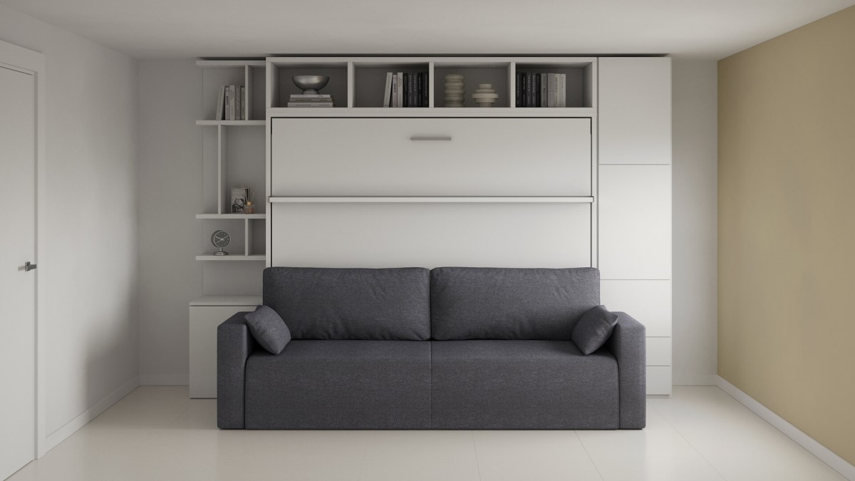 D - Royal Horizontal Queen Wall Bed with Sectional Sofa and Bookcase Set