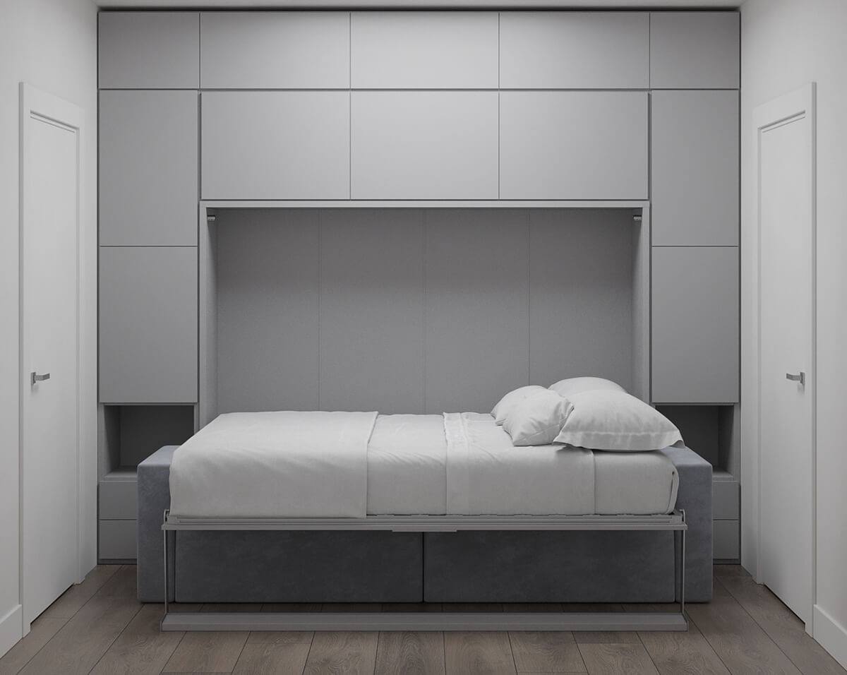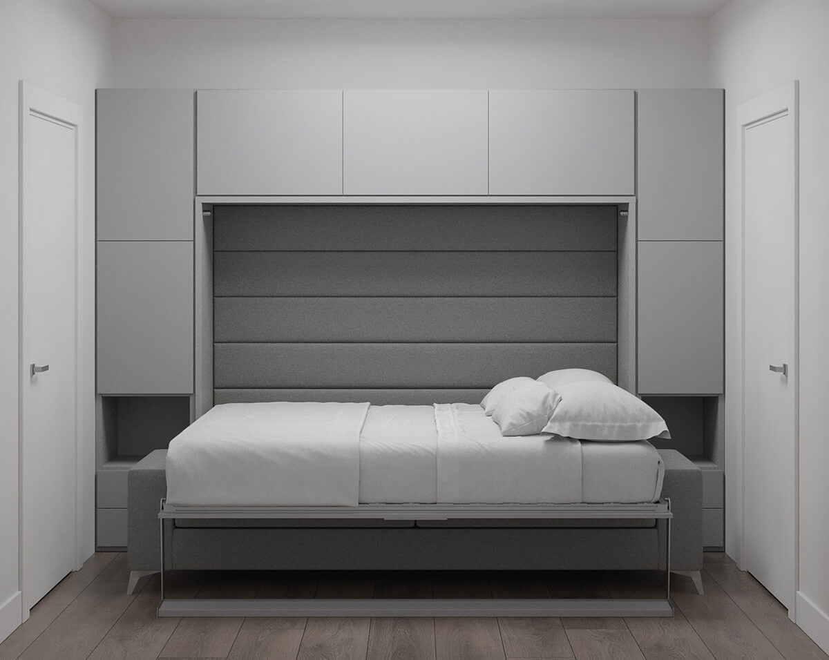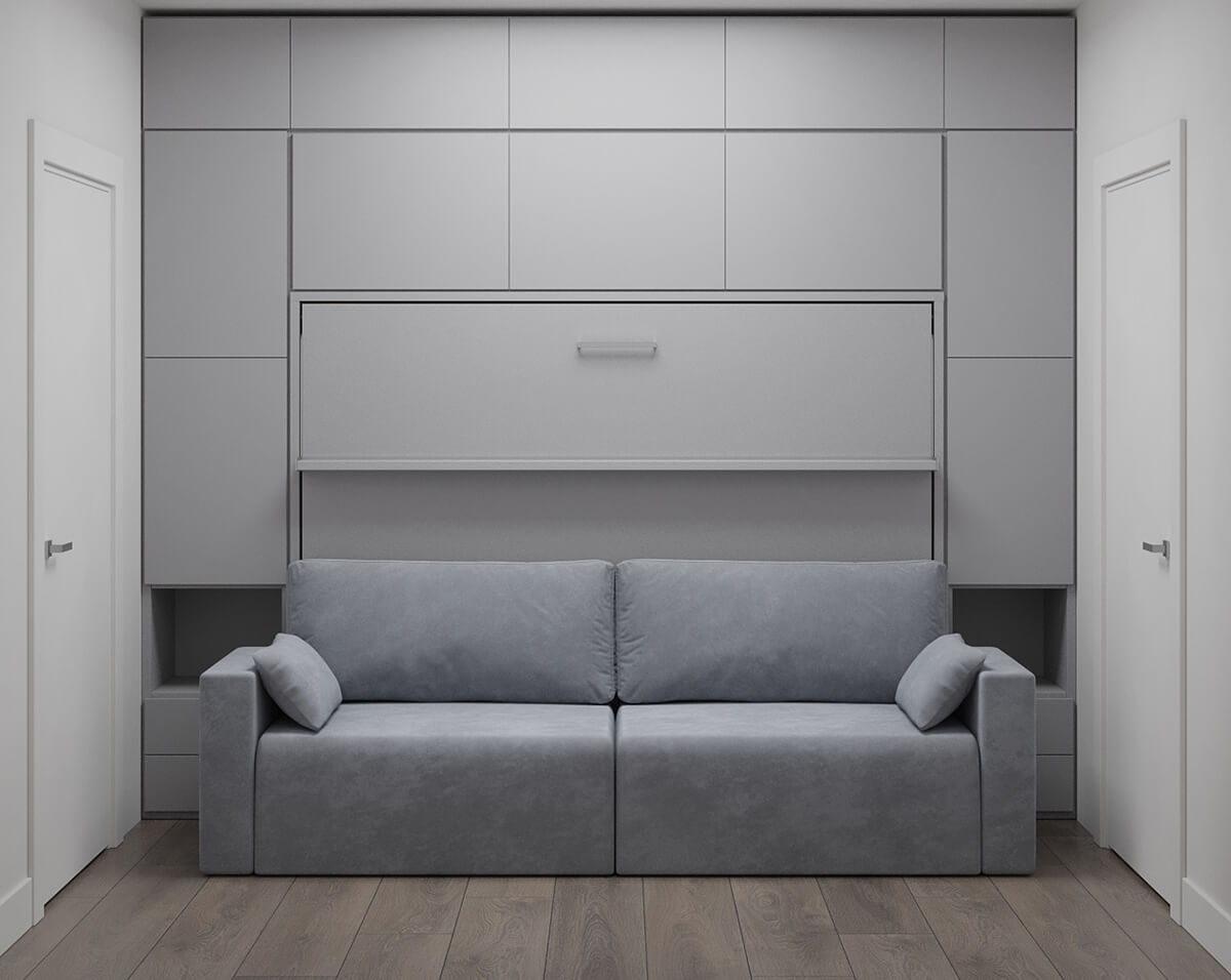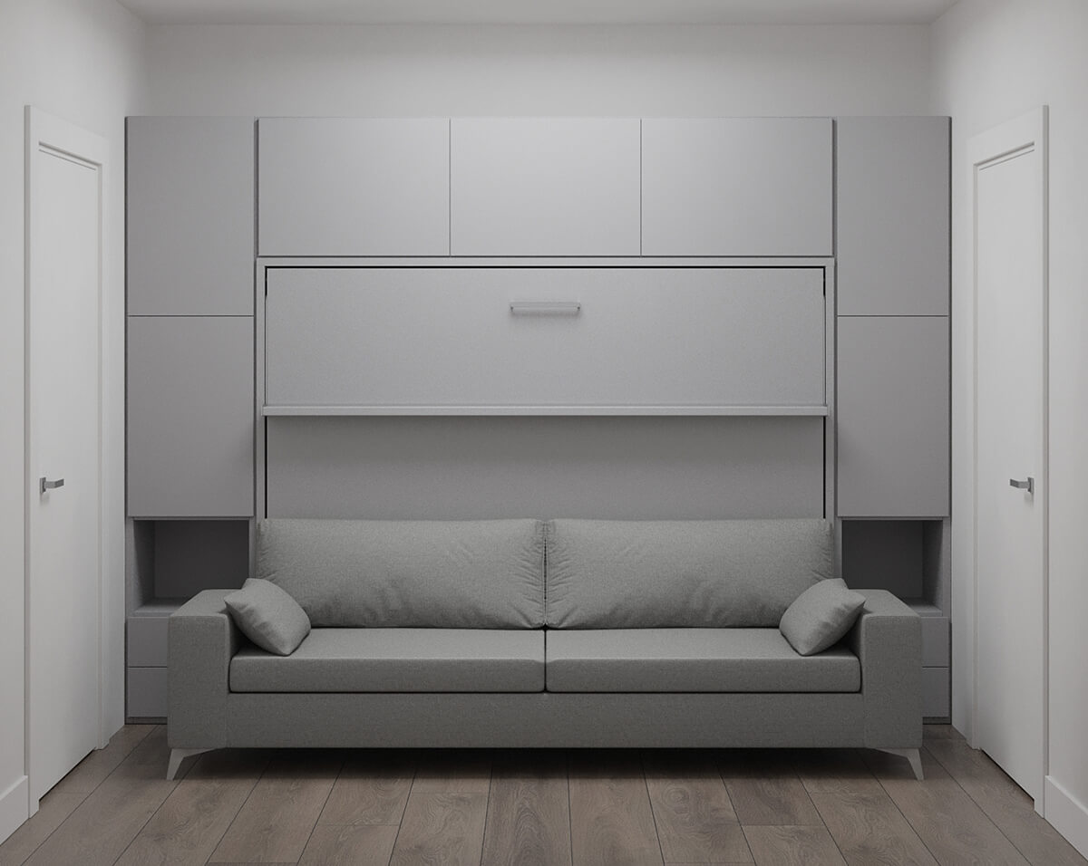 D - Royal Horizontal Queen Wall Bed with Sectional Sofa and Convertible Wardrobes