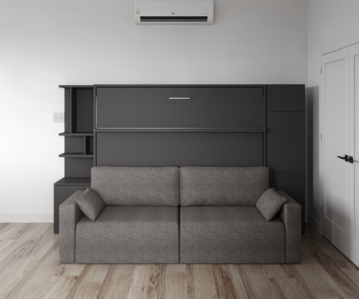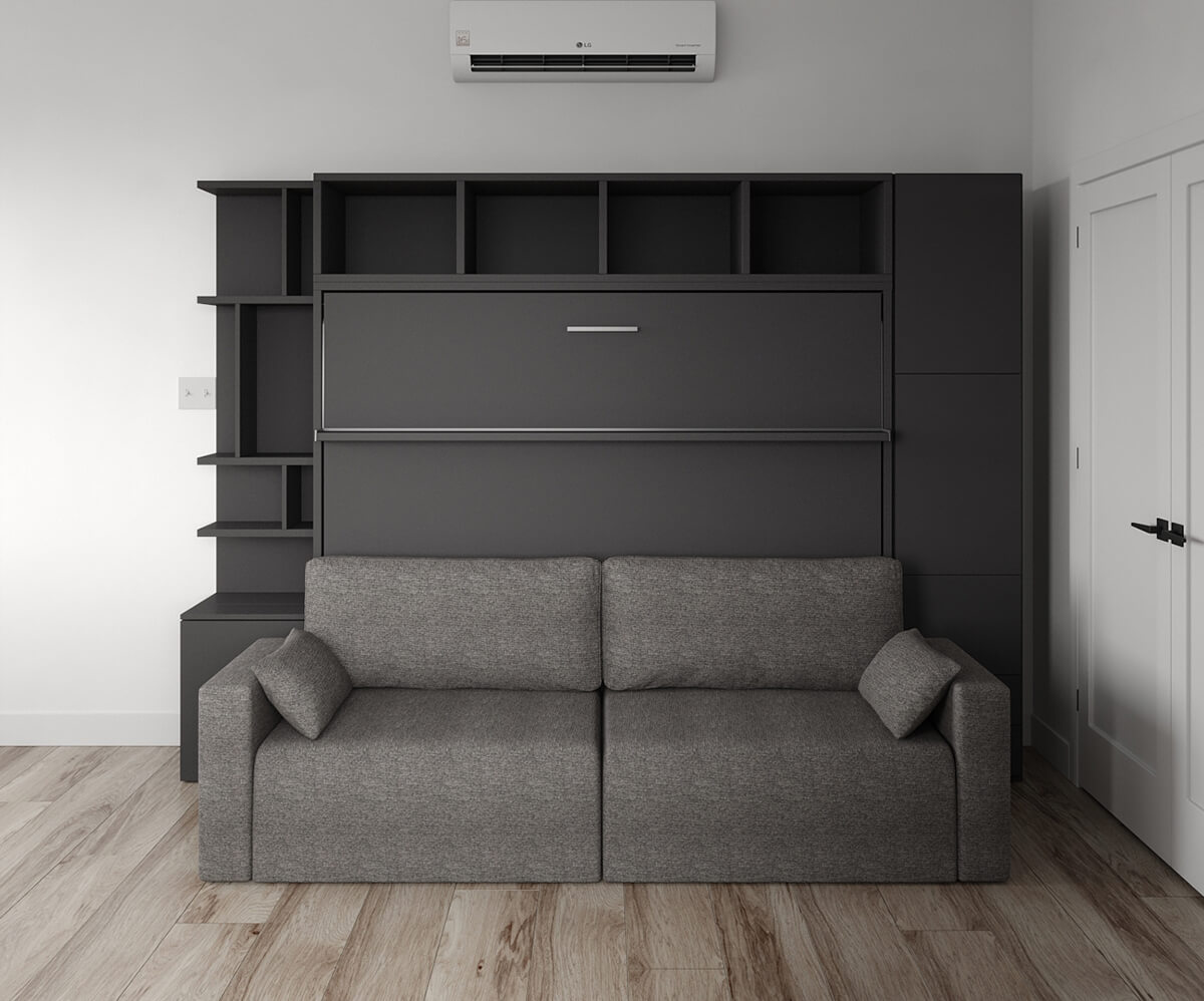D - Royal Horizontal Queen Wall Bed with Sofa and Bookcase Set