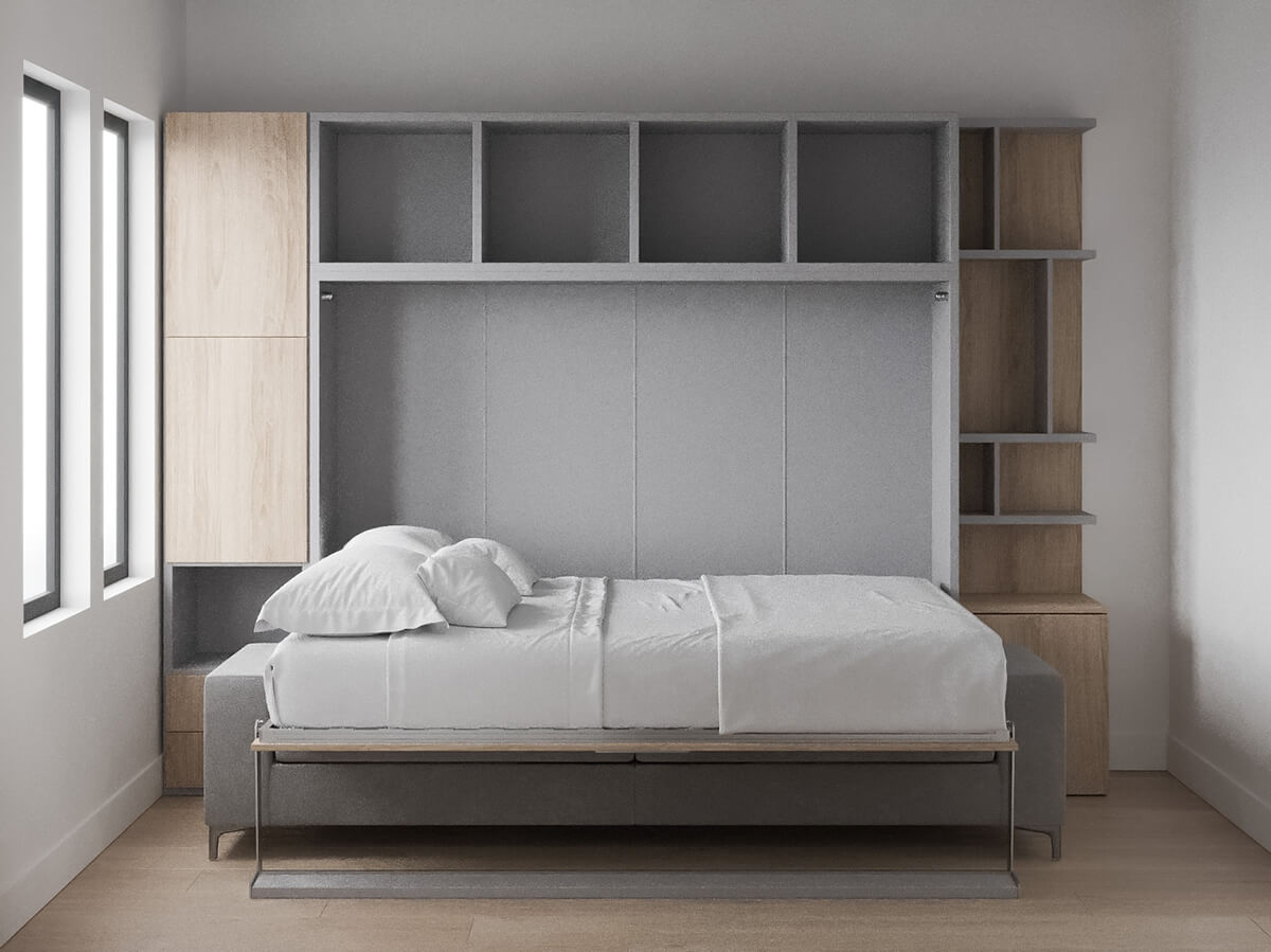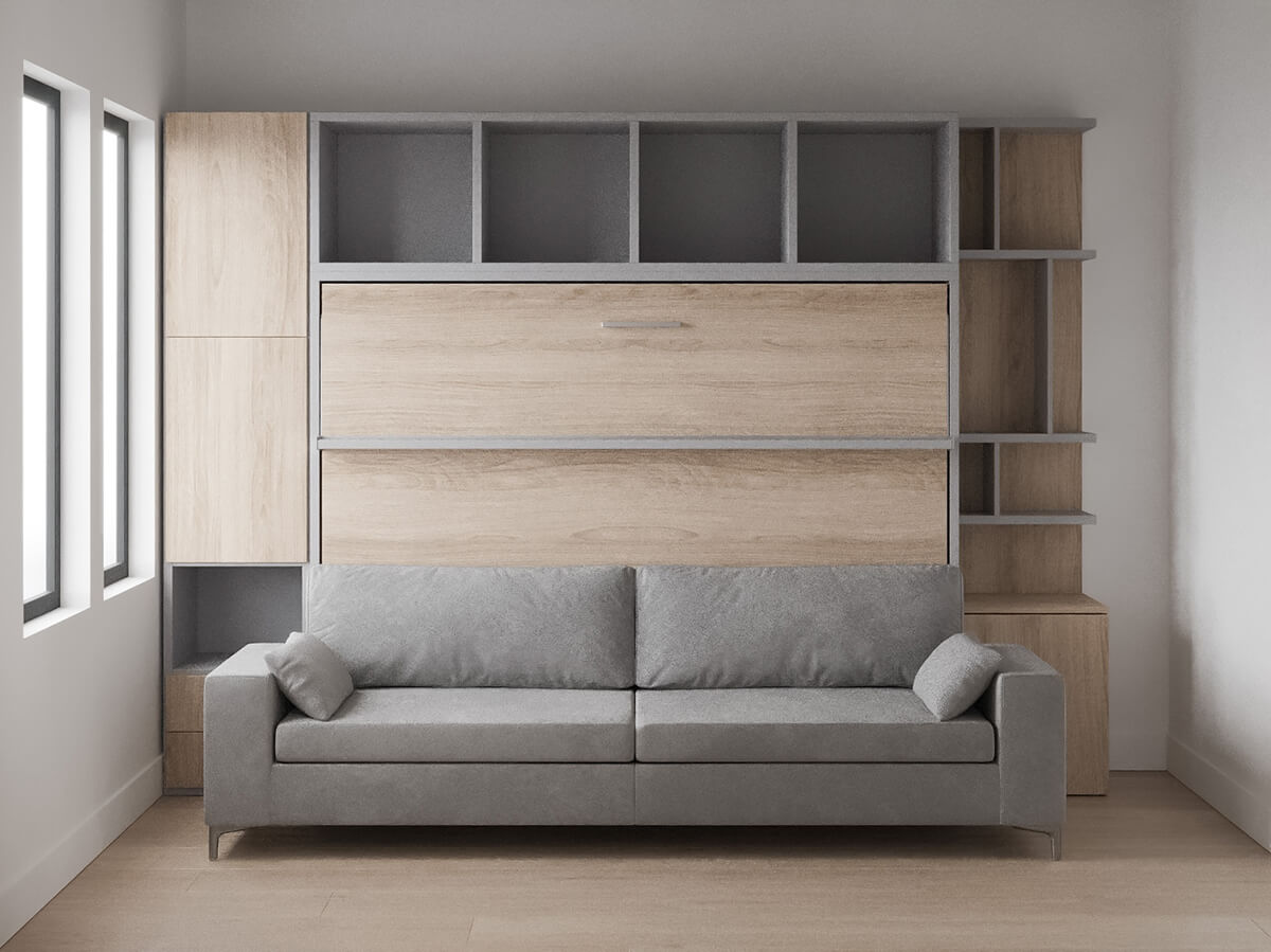D - Royal Horizontal Queen Wall Bed with Sofa and Bookcase Set