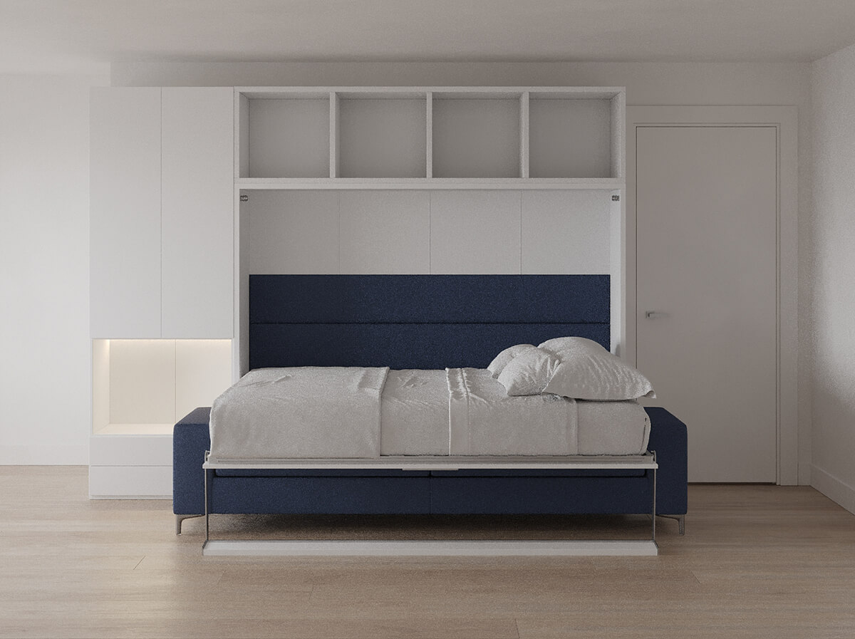 D - Royal Horizontal Queen Wall Bed with Sofa, Bookcase and Wardrobe