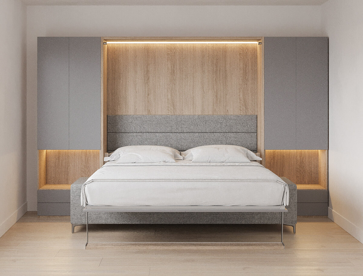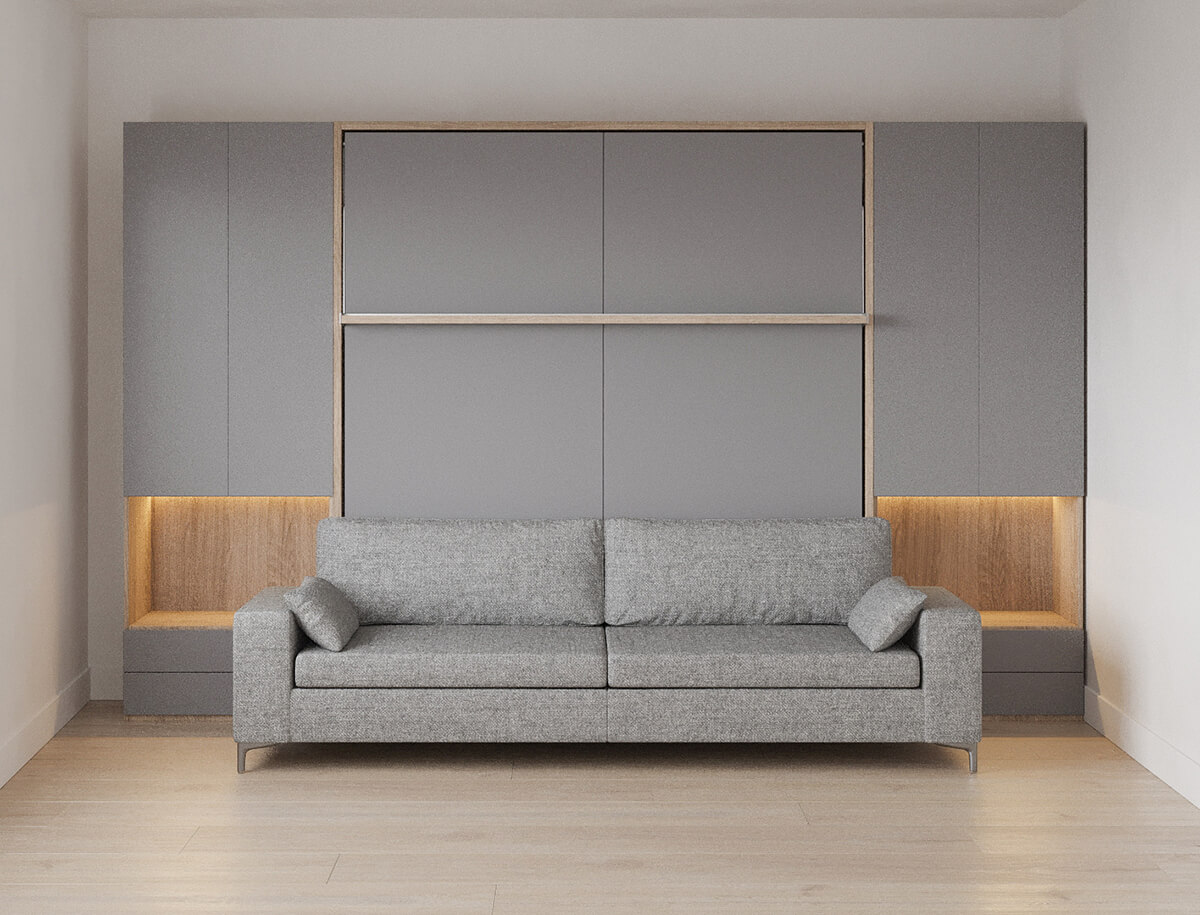 D - Royal King Murphy Bed with Sectional Sofa and Wardrobes