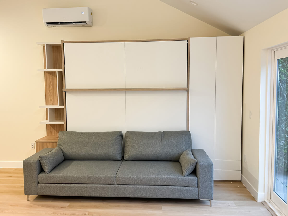 ROYAL King Wall Bed with Sectional Sofa and Bookcase Set