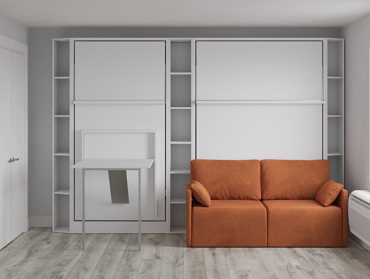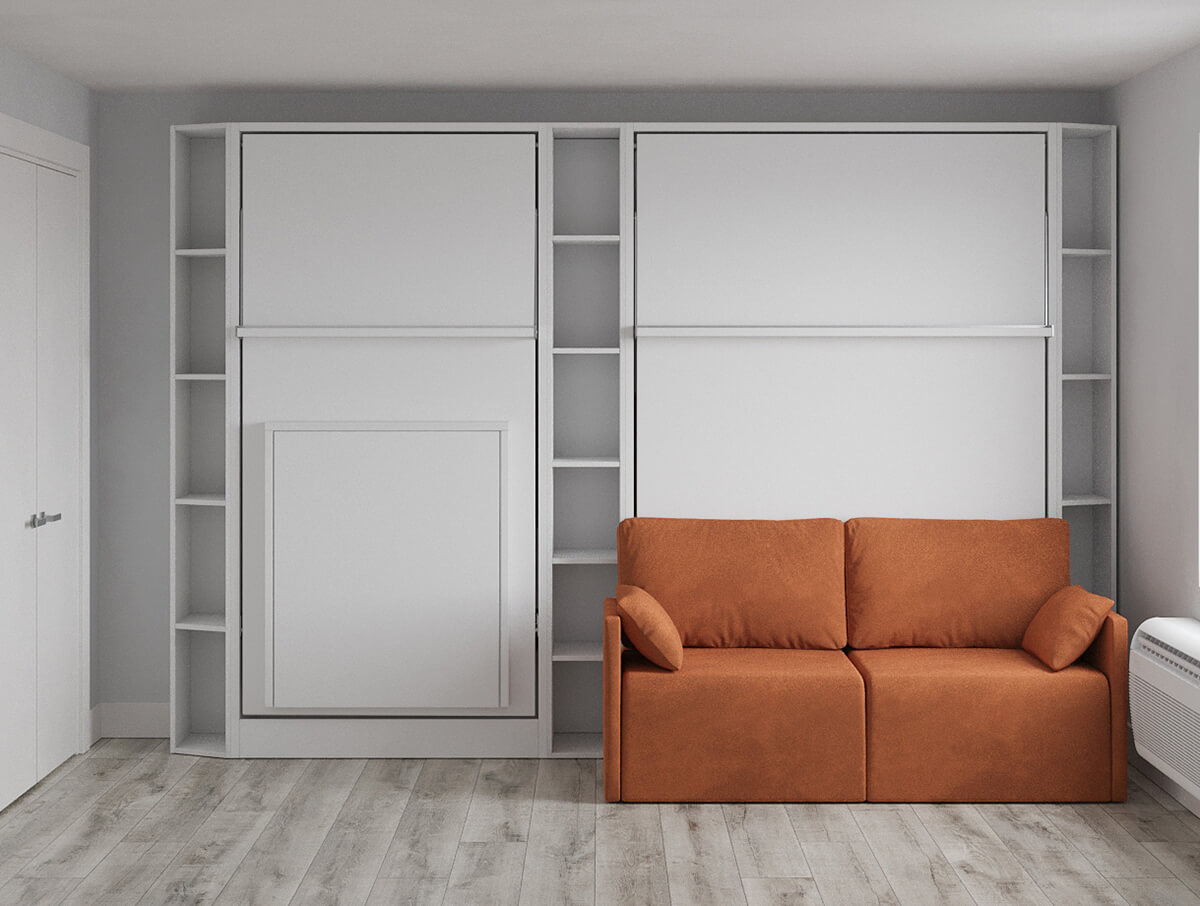 D - ROYAL Queen Wall Bed, Royal-Twin-Twin-XL-Wall-Bed with Sectional Sofa and Bookcase Set
