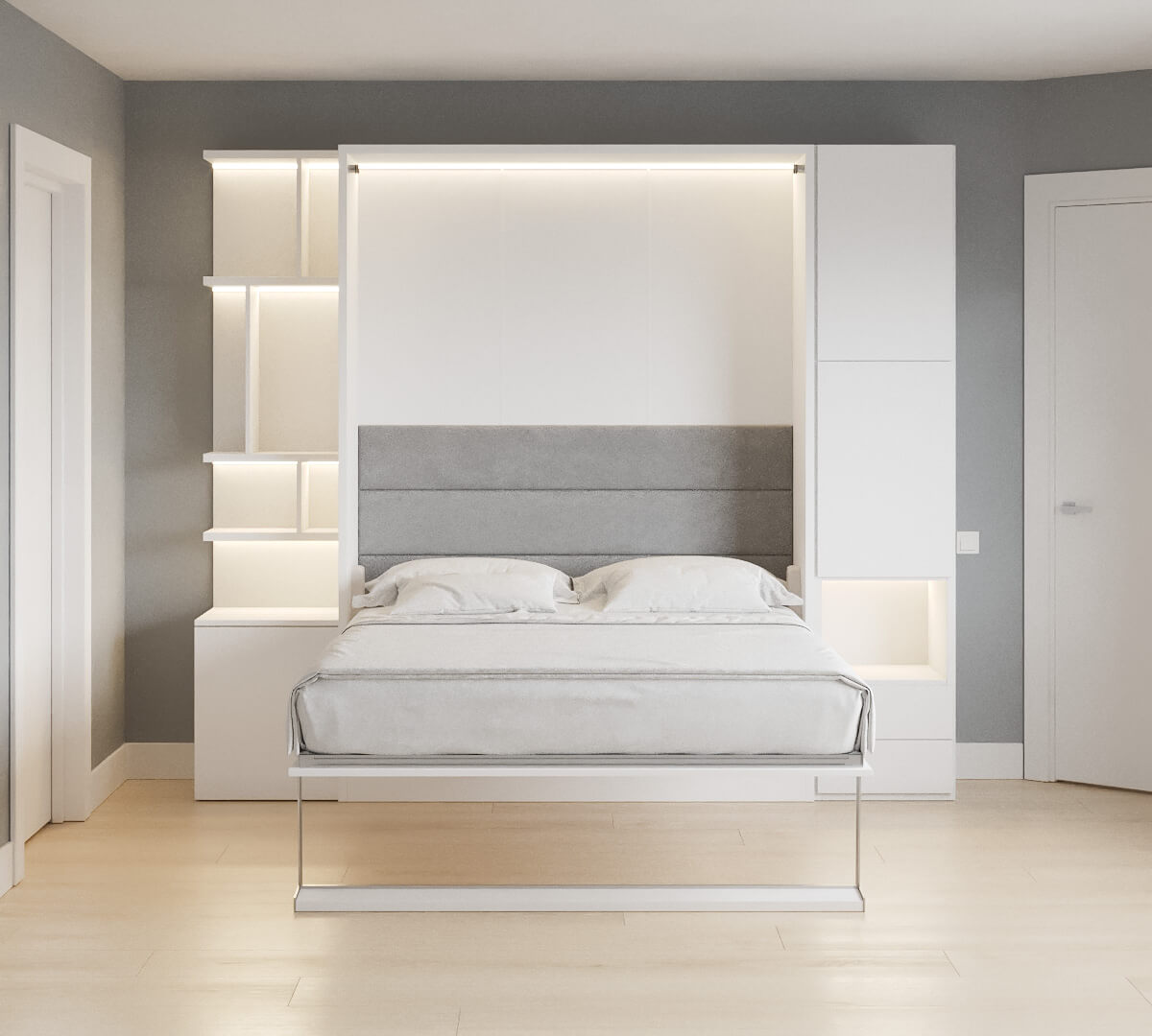 D - Royal Queen Wall Bed With Bookcase and Wardrobe