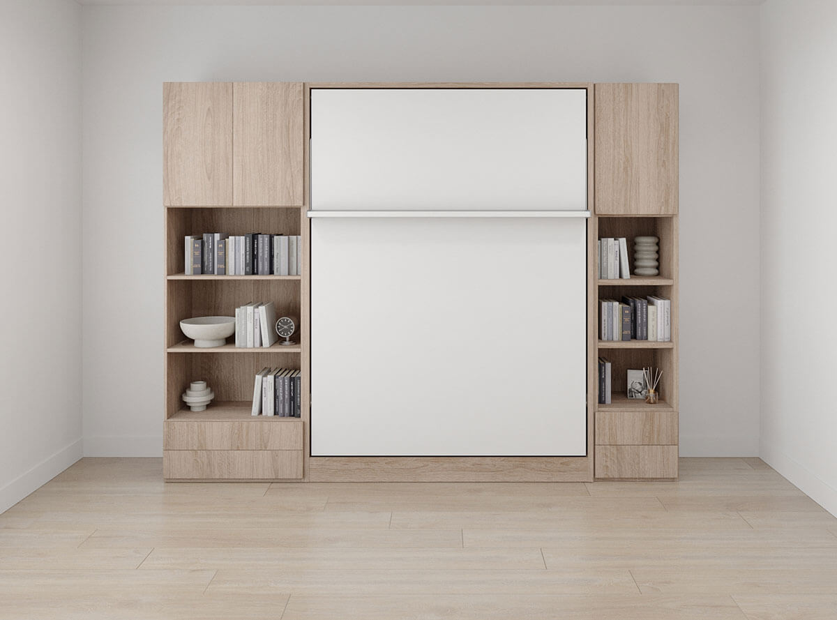 D - ROYAL Queen Wall Bed with Bookcase Set