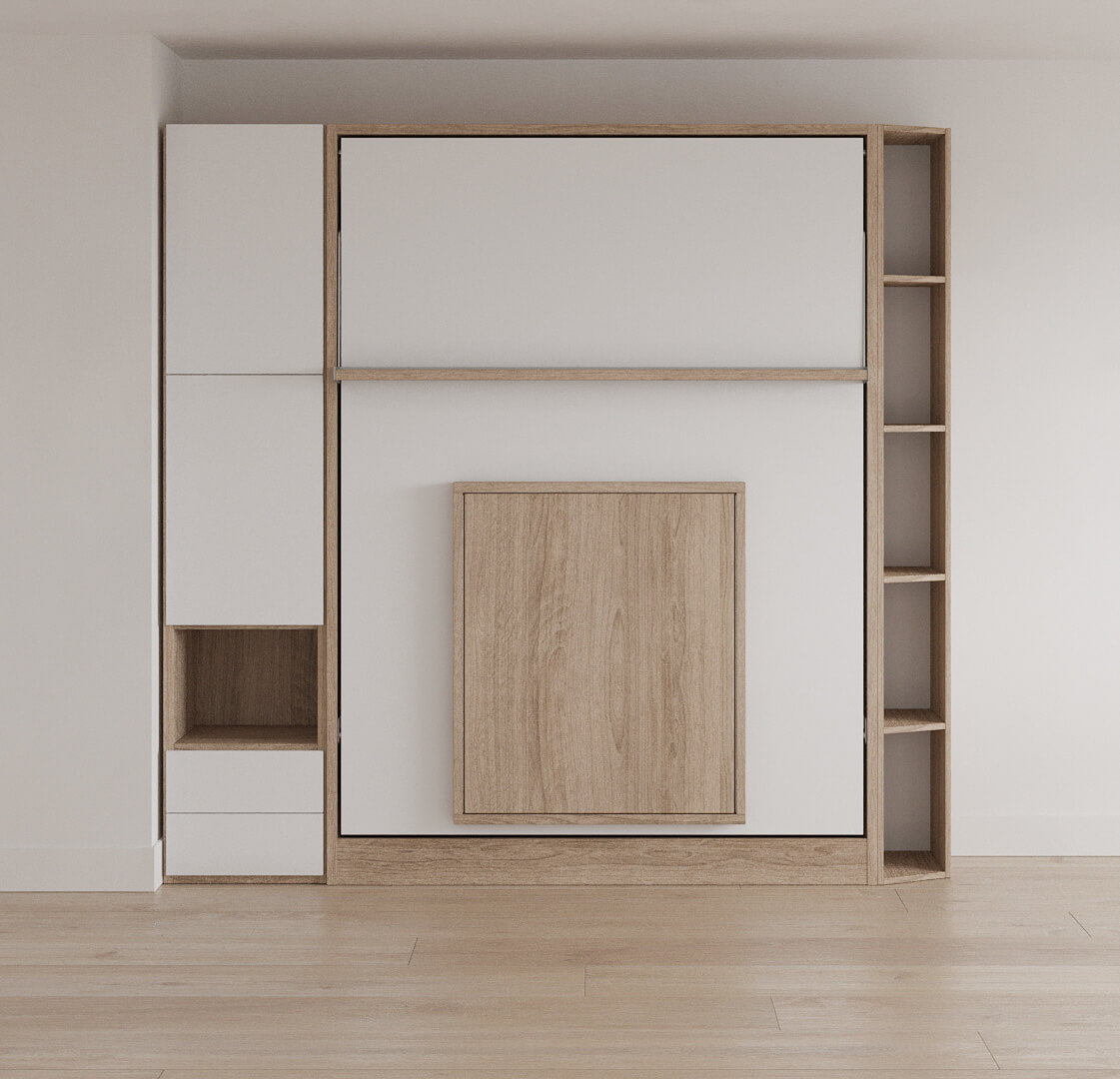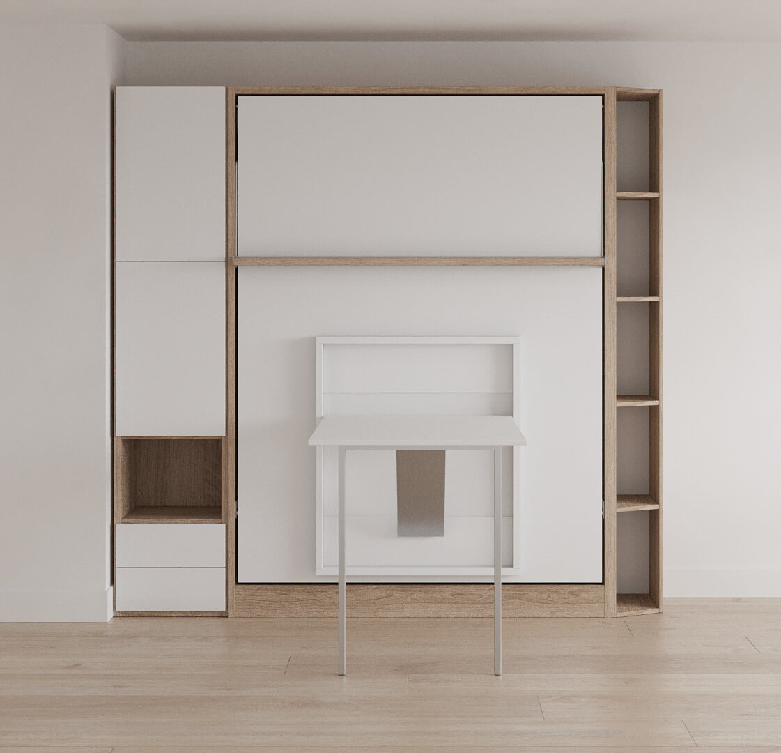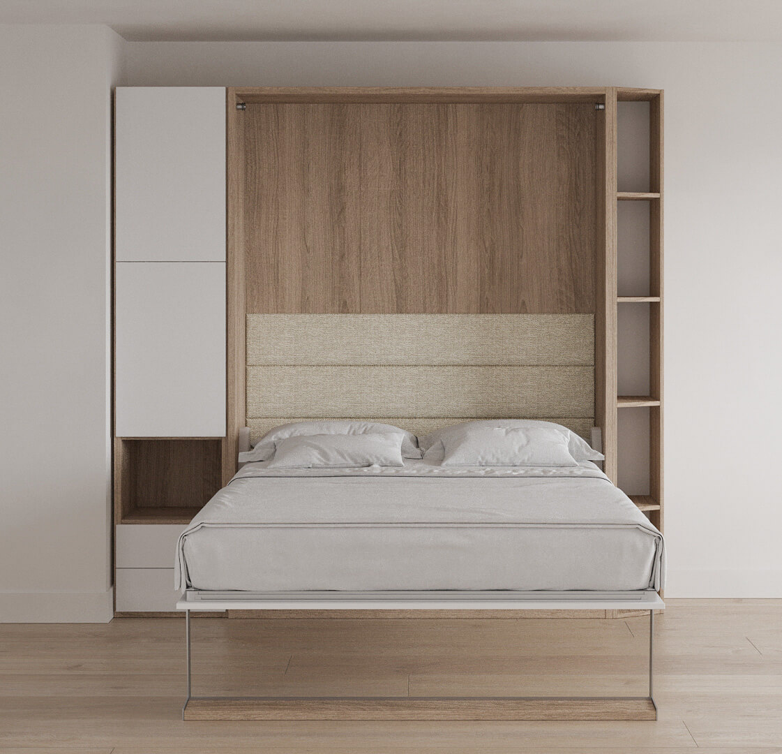 D - ROYAL Queen Wall Bed with Bookcase, Wardrobe and Folding Table