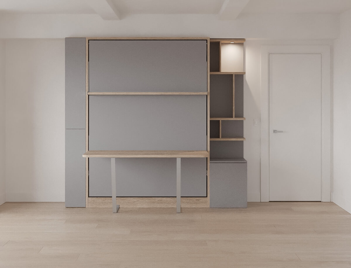 D - Royal Queen Wall Bed With Desk and Bookcase