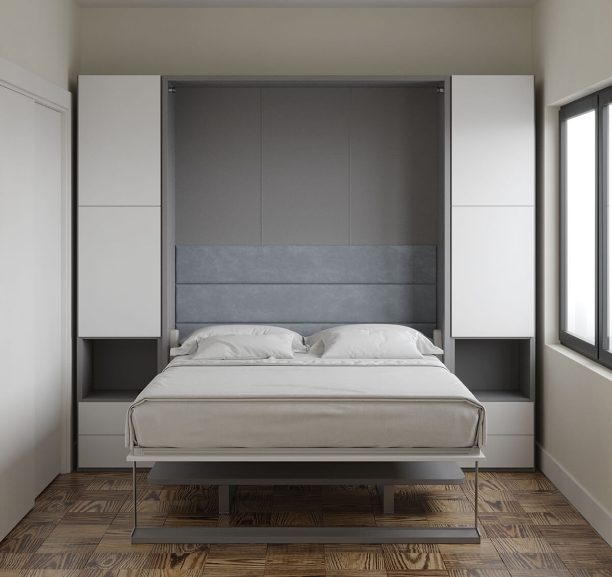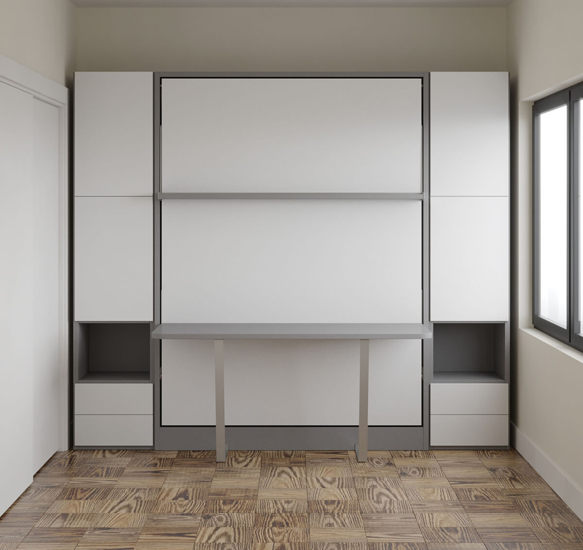 D - Royal Queen Wall Bed With Desk and-Wardrobes