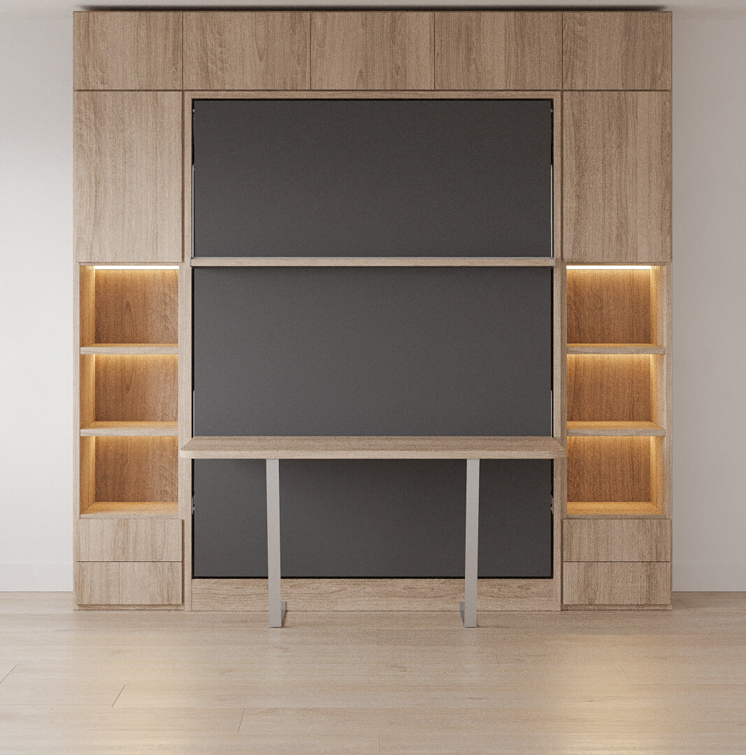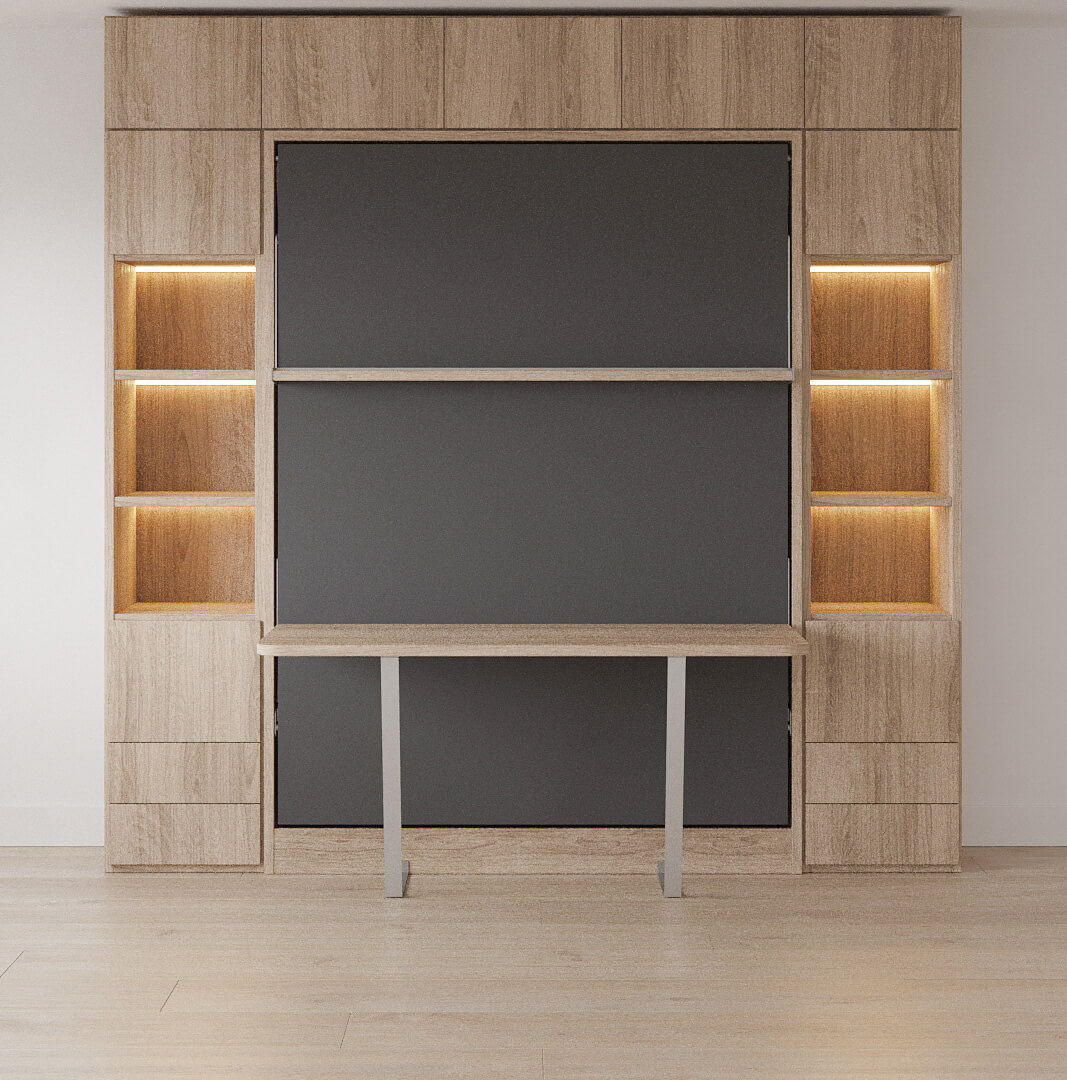 D - Royal Queen Wall Bed with Desk, Wardrobes and Bookcase Set