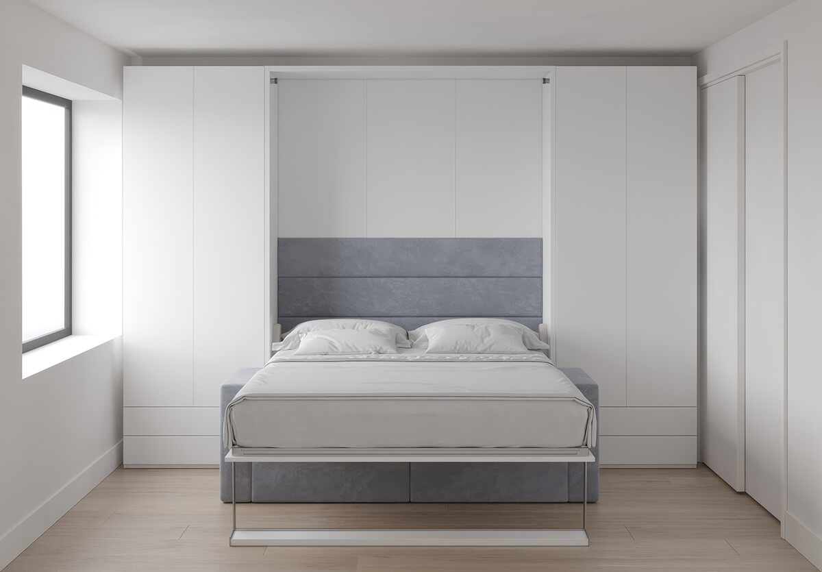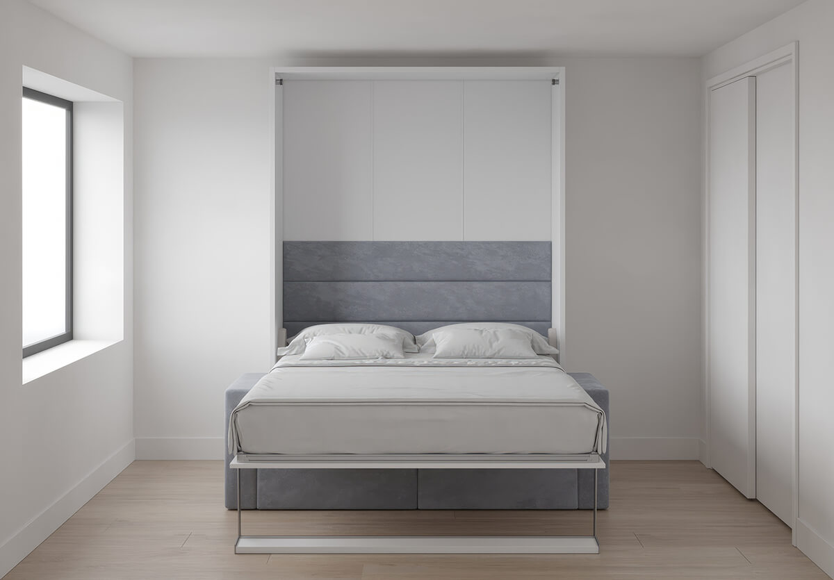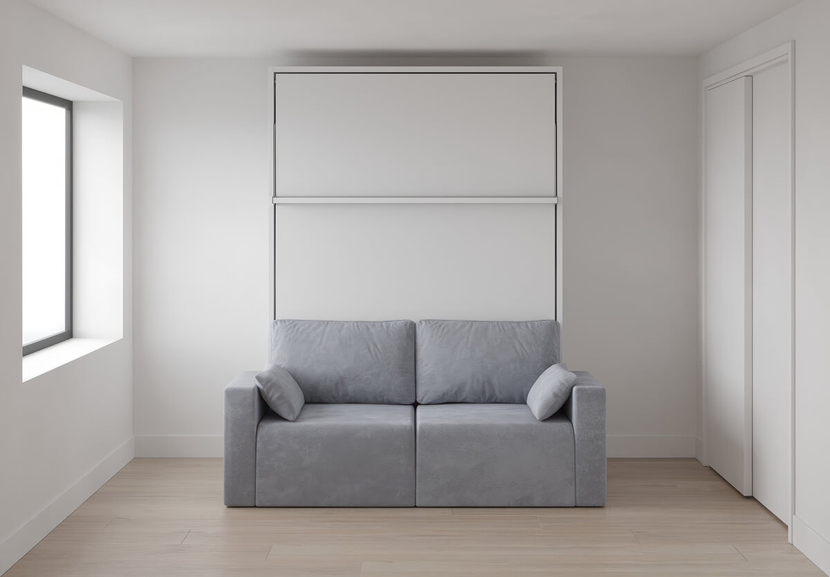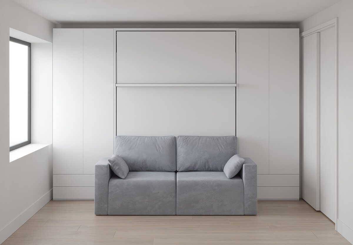 D - ROYAL Queen Wall Bed with Sectional Sofa and Bookcase