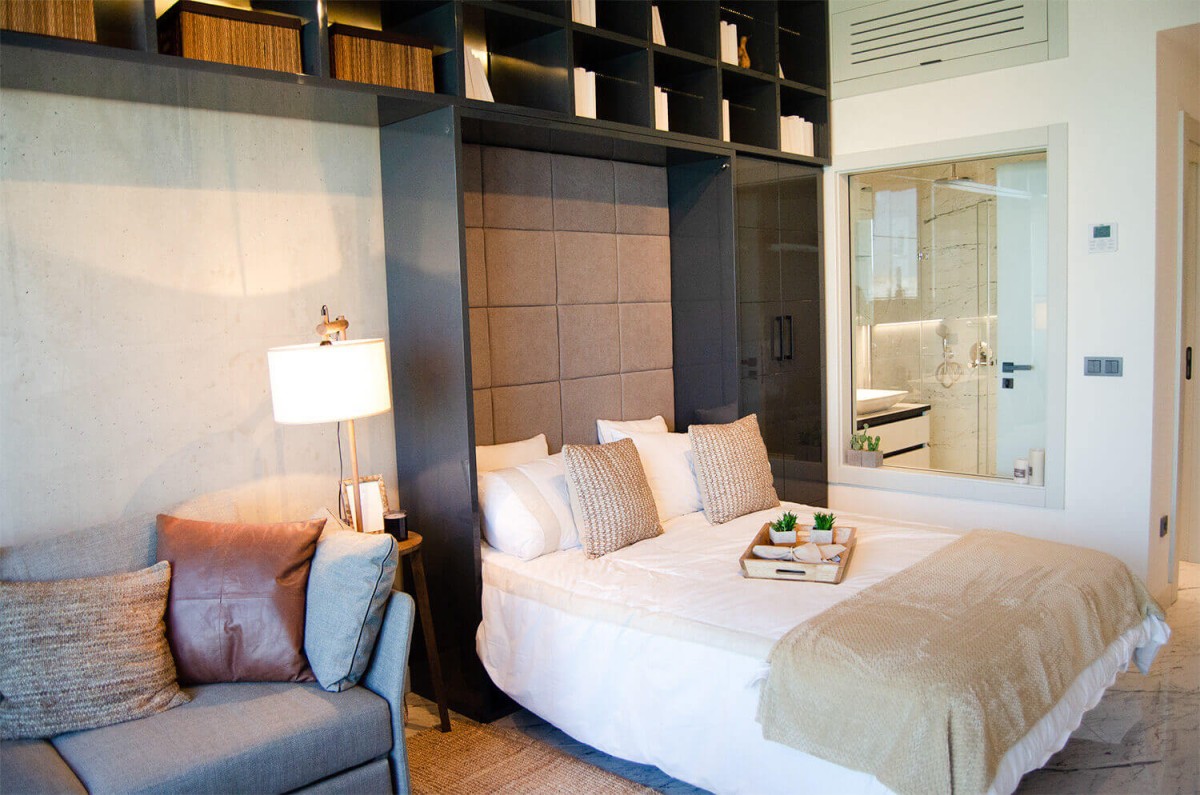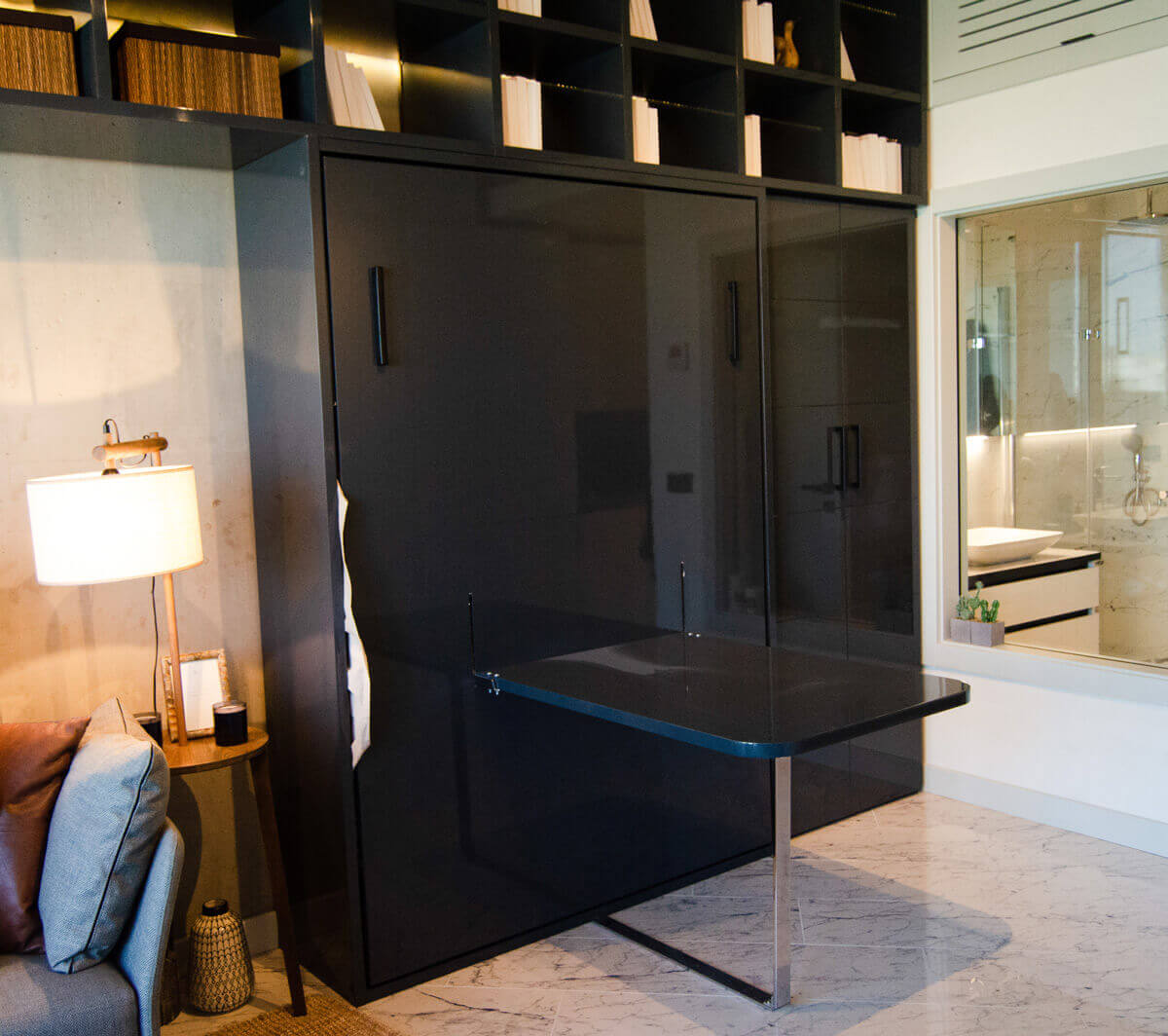 ROYAL Queen Wall Bed with Sectional Sofa and Bookcase Set