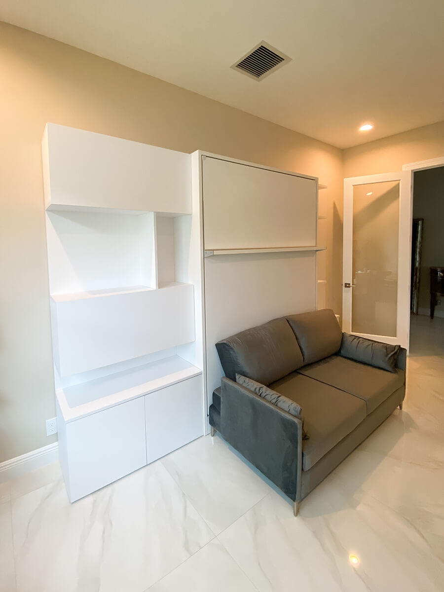 ROYAL Queen Wall Bed with Sectional Sofa and Bookcase Set