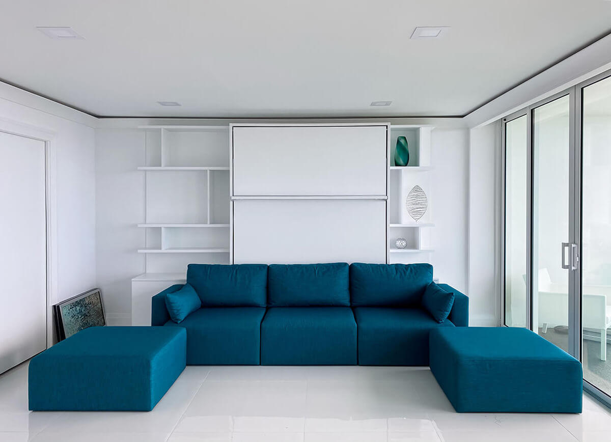ROYAL Queen Wall Bed with Sectional Sofa and Bookcase Set