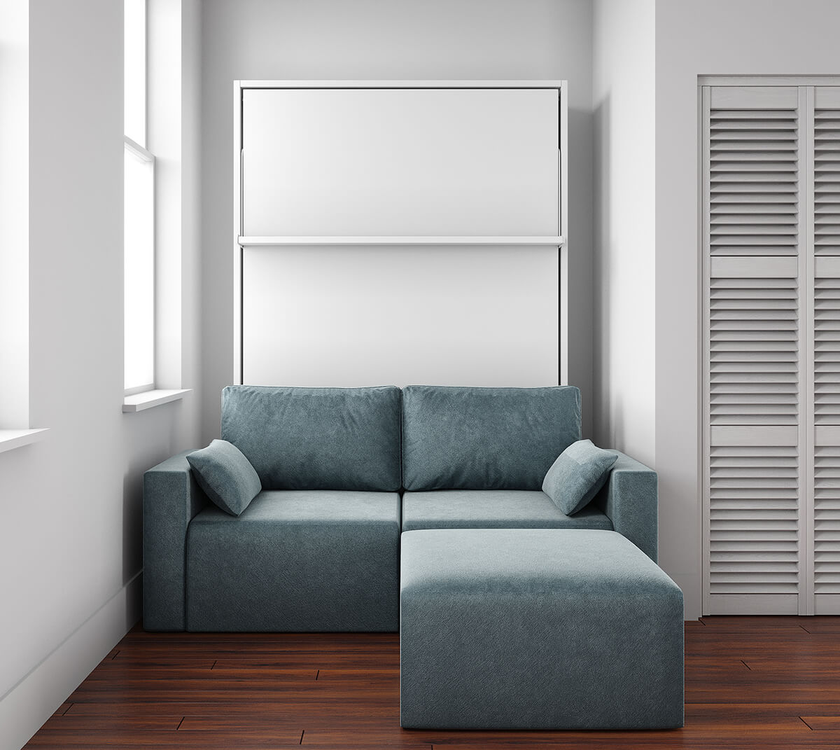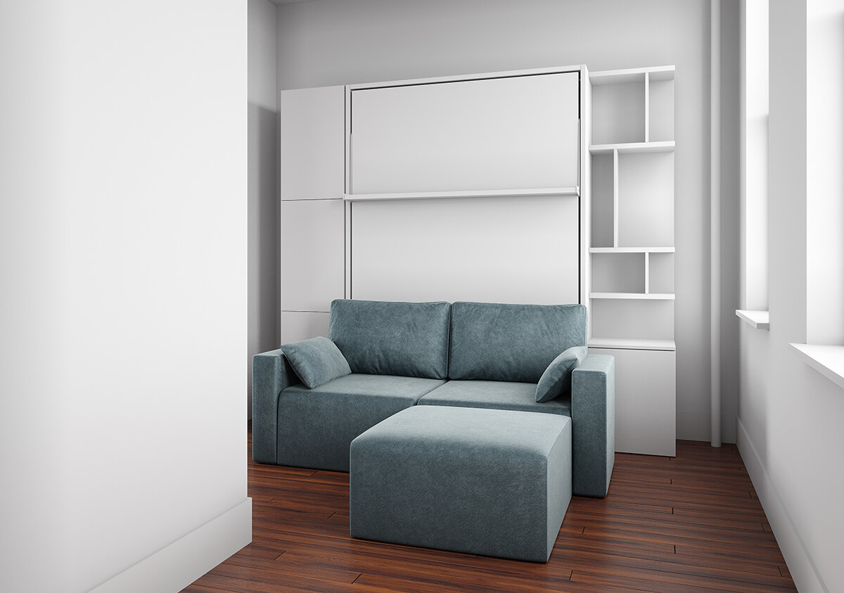 D - ROYAL Queen Wall Bed with Sectional Sofa and Bookcase Set