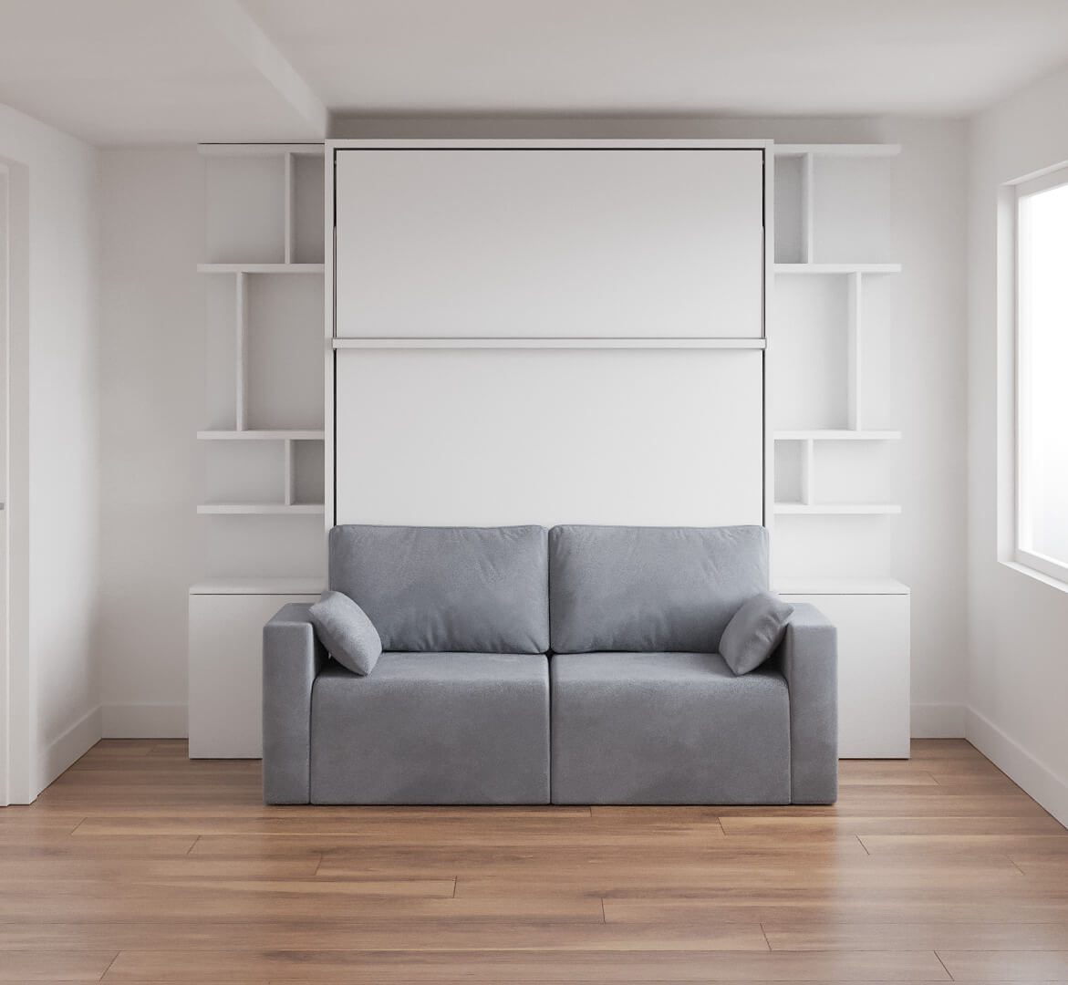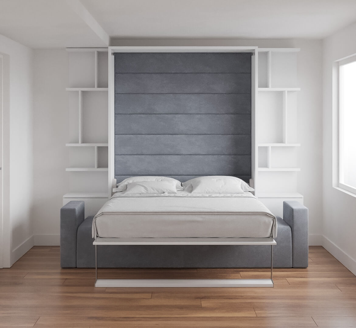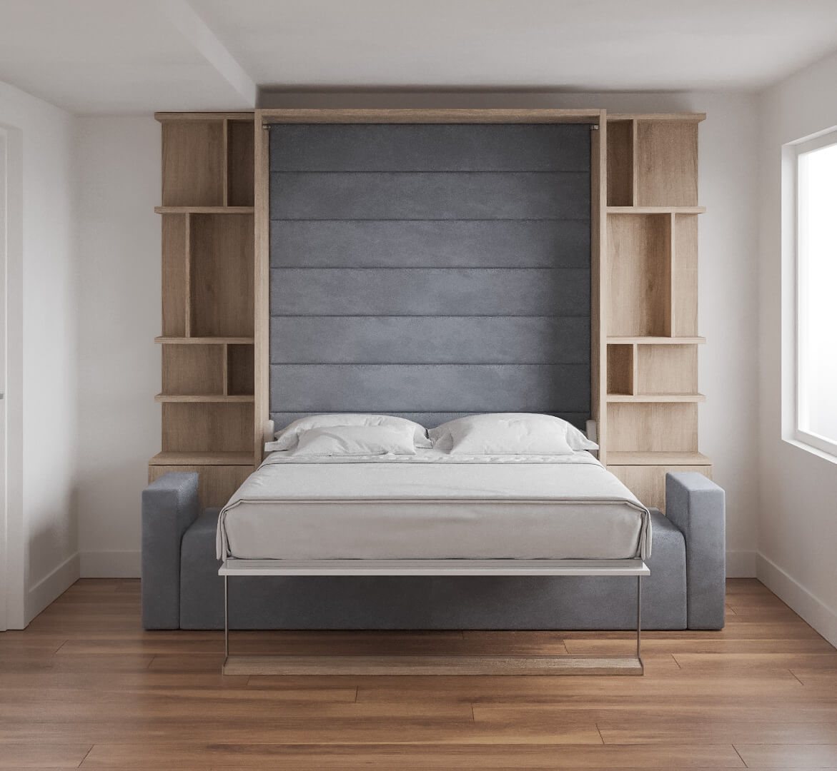 D - Royal Queen Wall Bed with Sectional Sofa and Bookcases