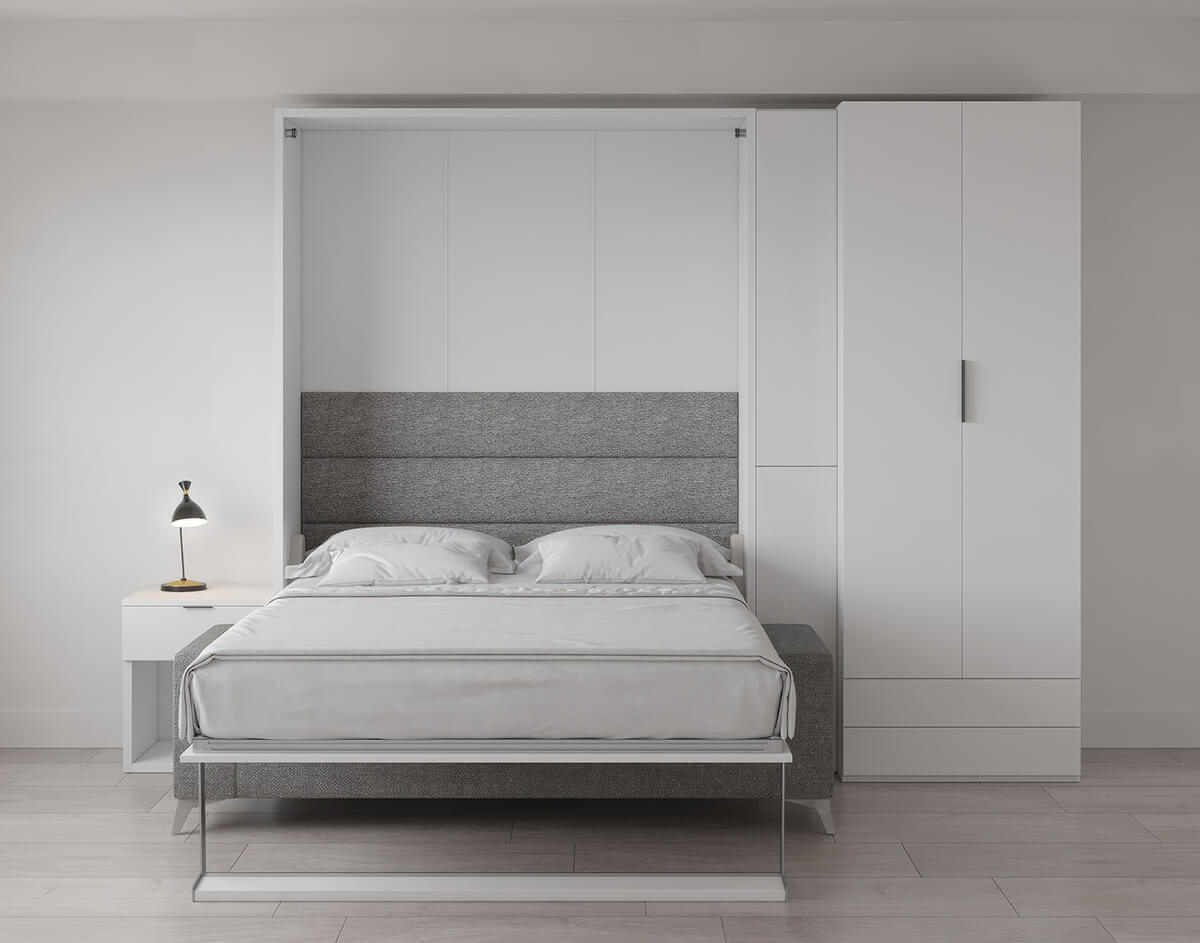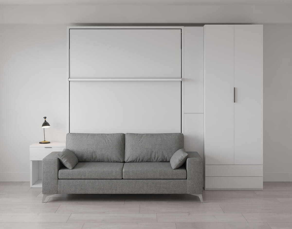 D - ROYAL Queen Wall Bed with Sectional Sofa and Wardrobe