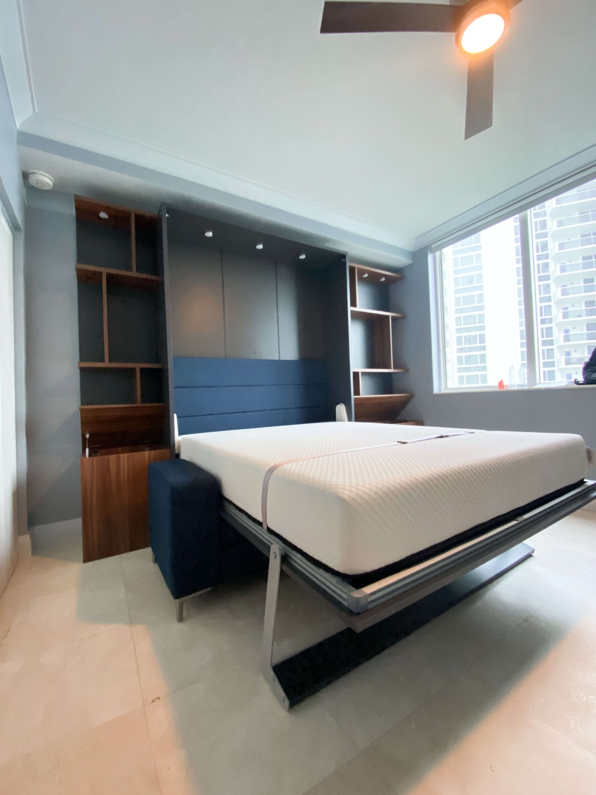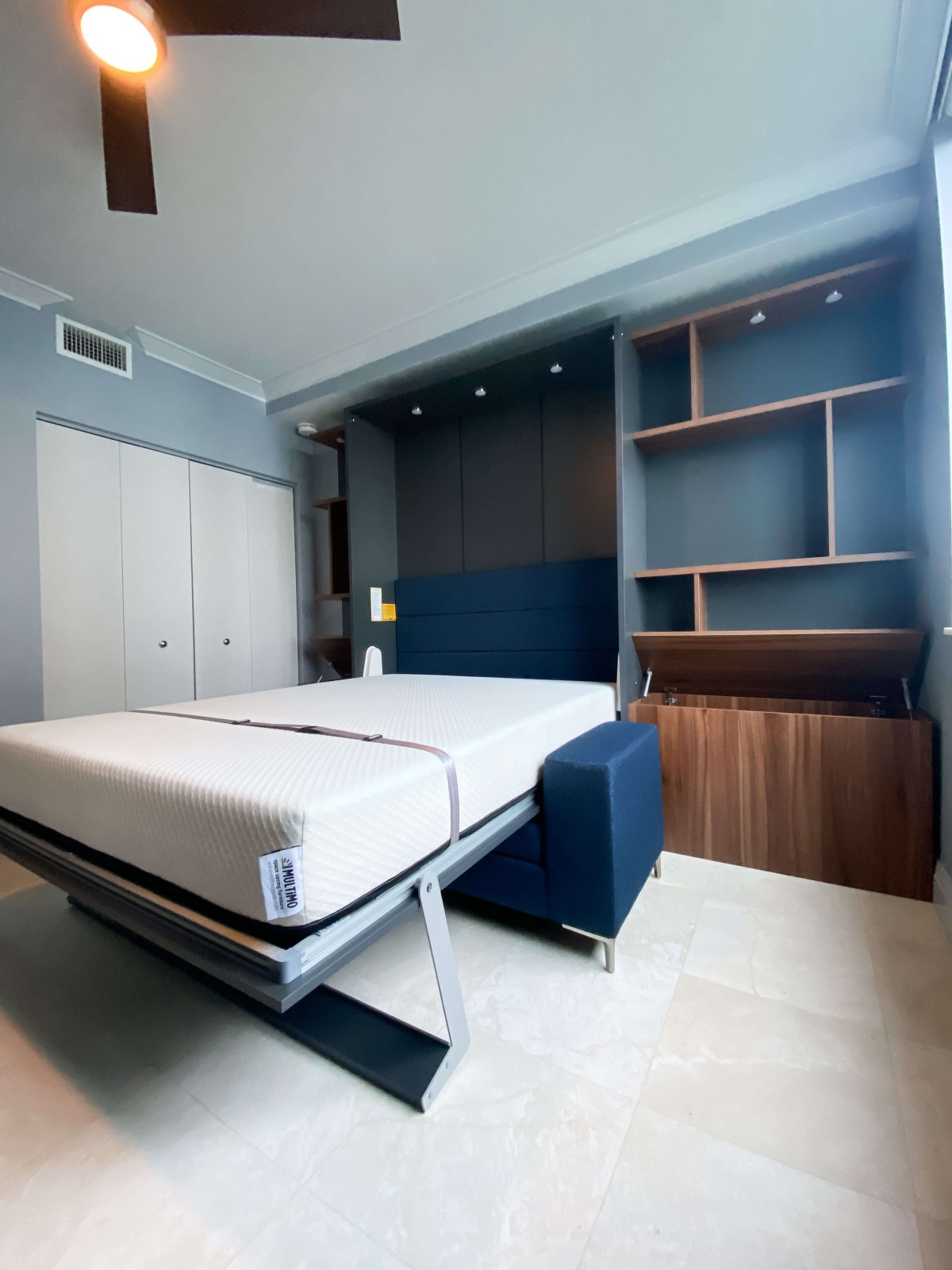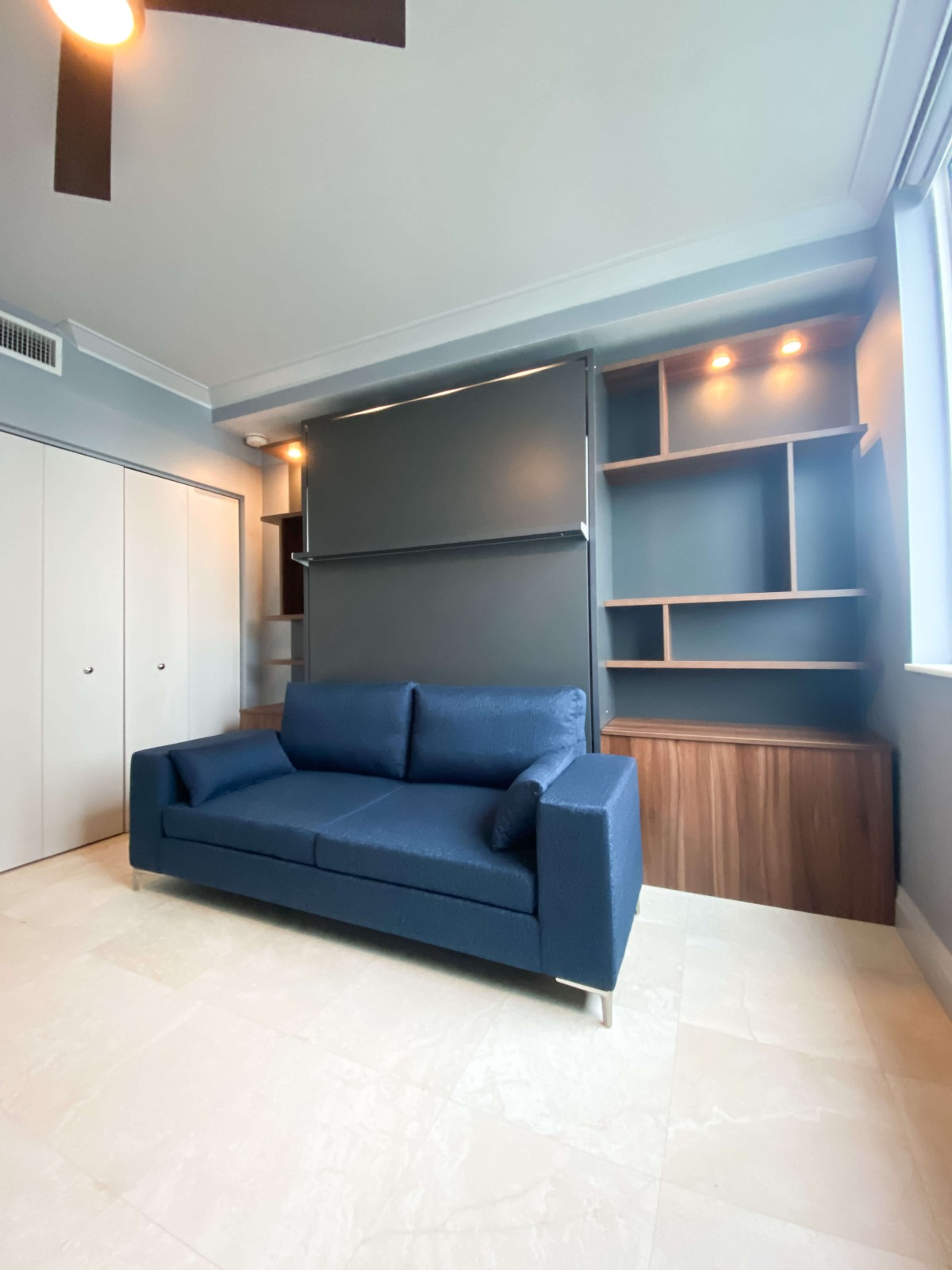 ROYAL Queen Wall Bed with Sectional Sofa and Wardrobes