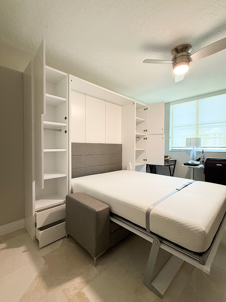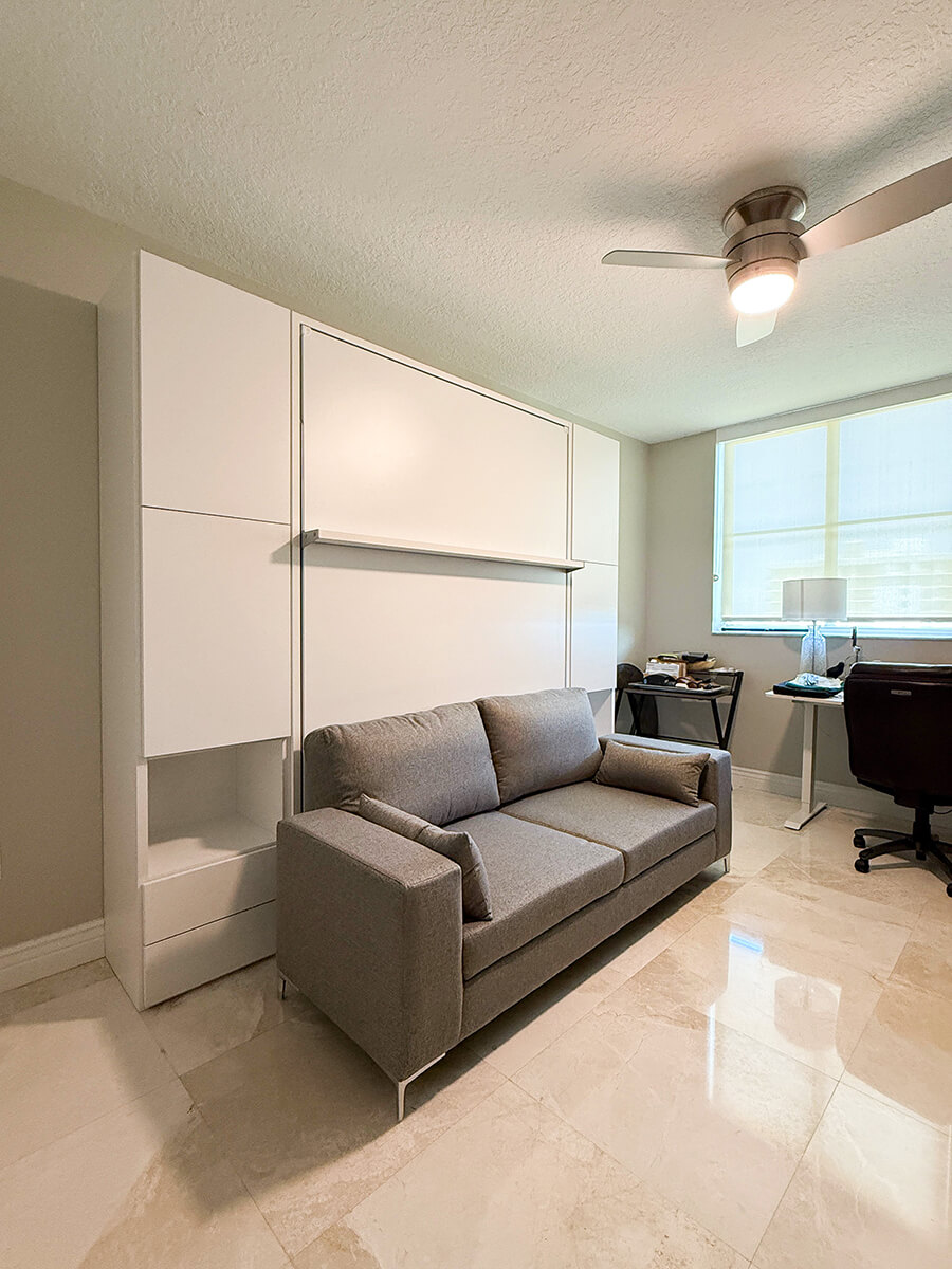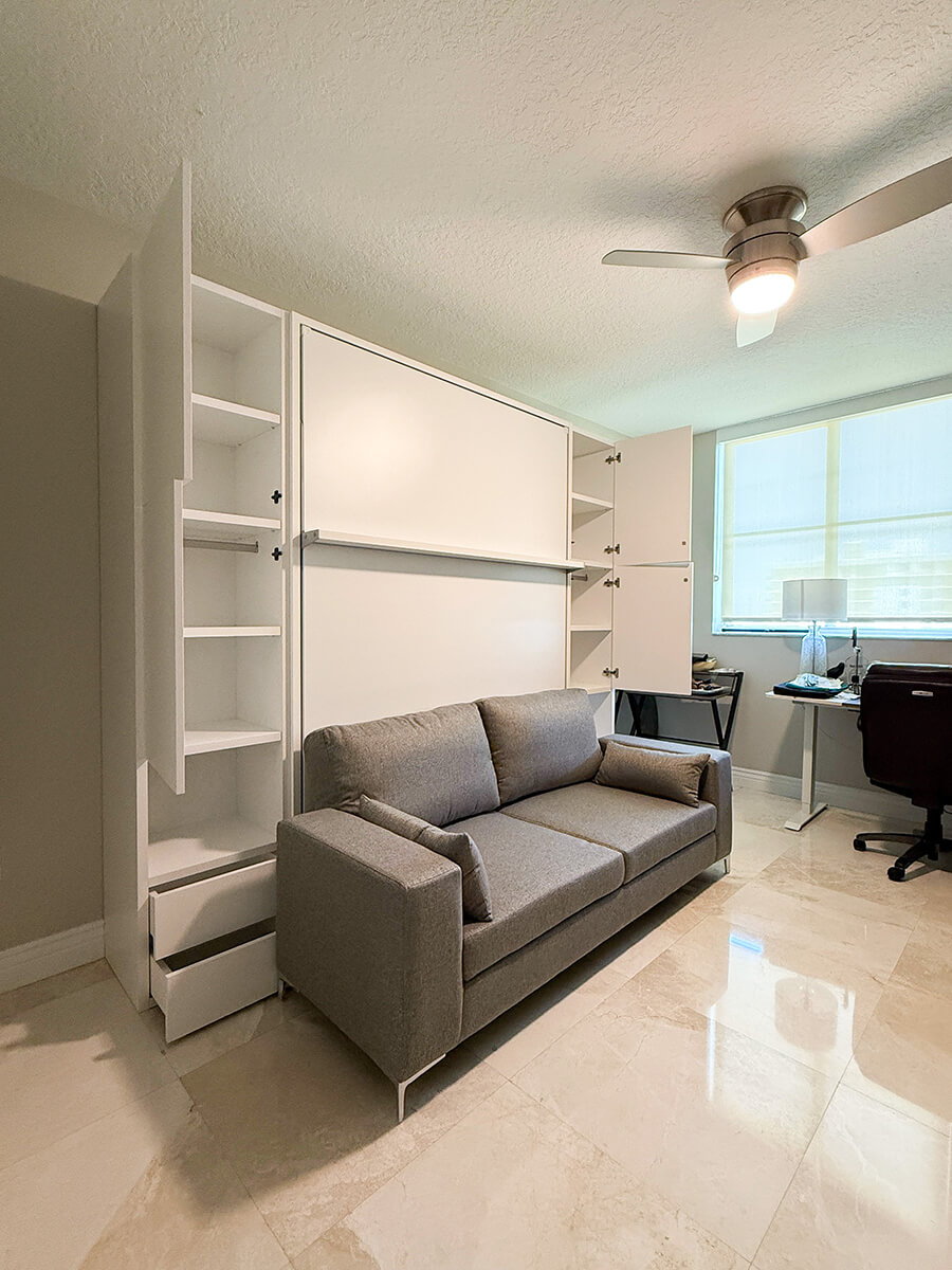 ROYAL Queen Wall Bed with Sectional Sofa and Wardrobes