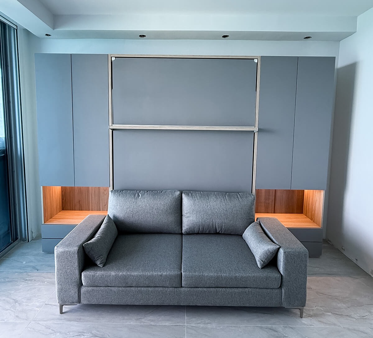 ROYAL Queen Wall Bed with Sectional Sofa and Wardrobes