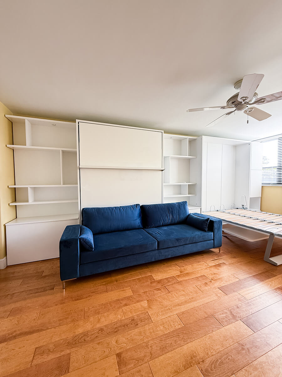 ROYAL Queen Wall Bed with Sectional Sofa, Self Leveling Desk and Wardrobe