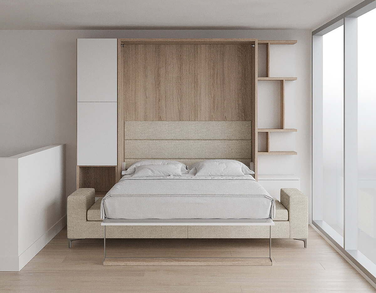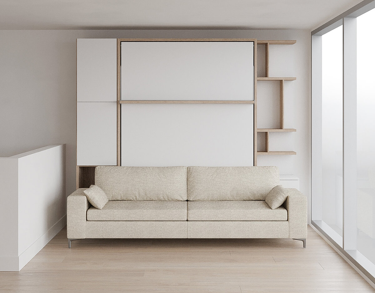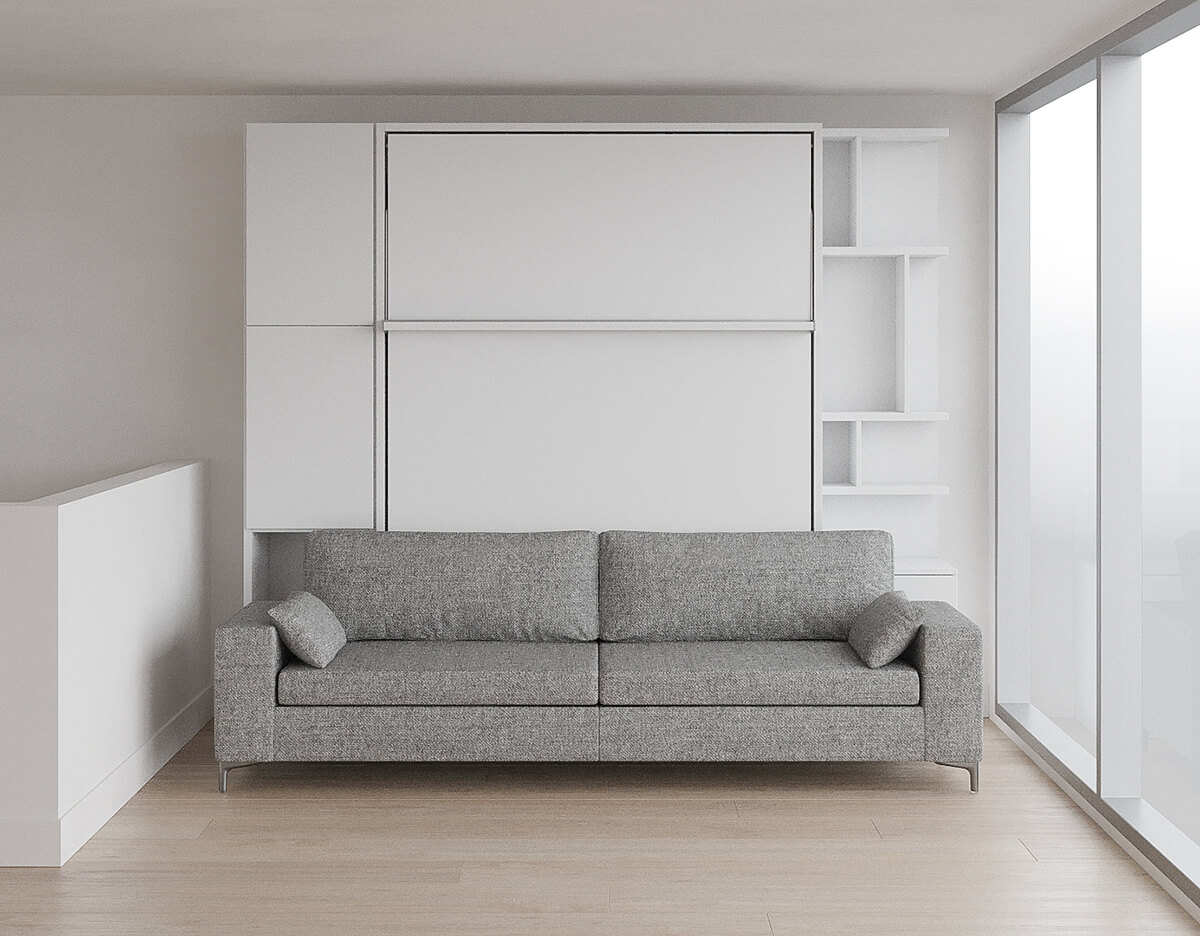 D - ROYAL Queen Wall Bed with Sectional Sofa, Wardrobe and Bookcase Set