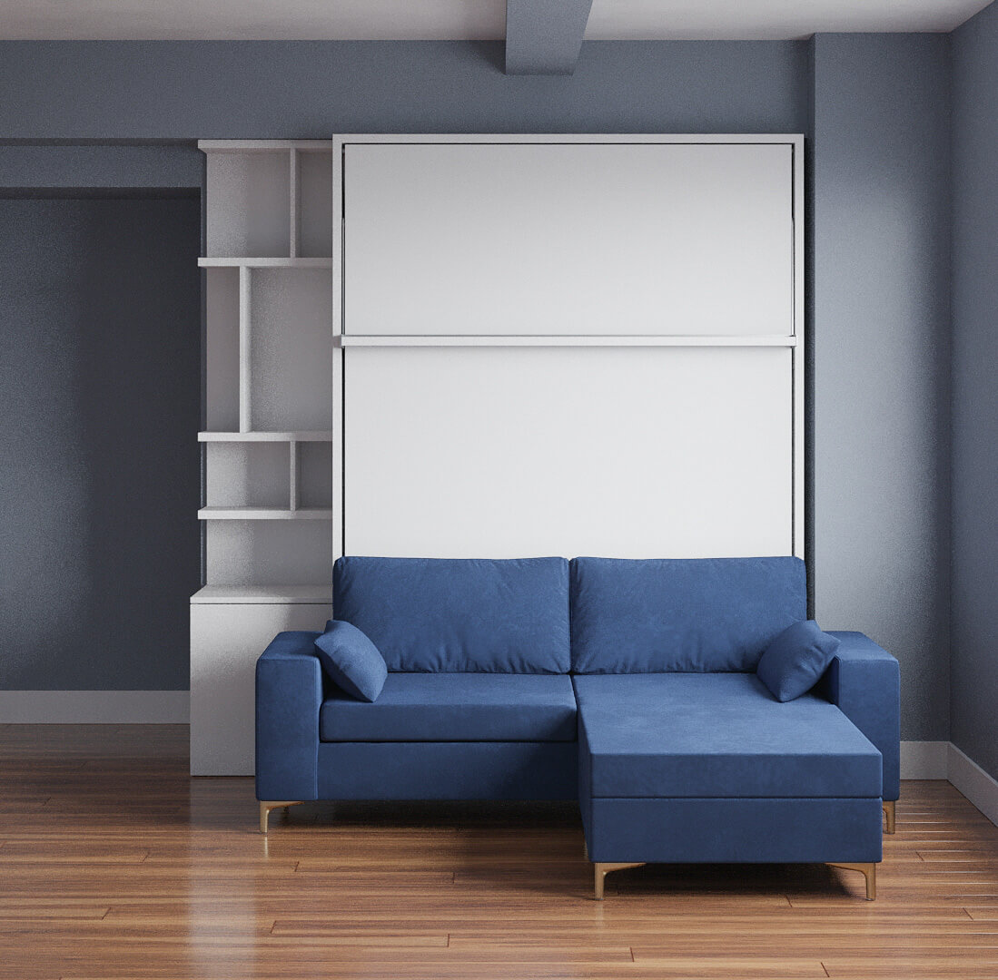 D - ROYAL Queen Wall Bed with Sectional Sofa Wardrobe and Bookcase Set