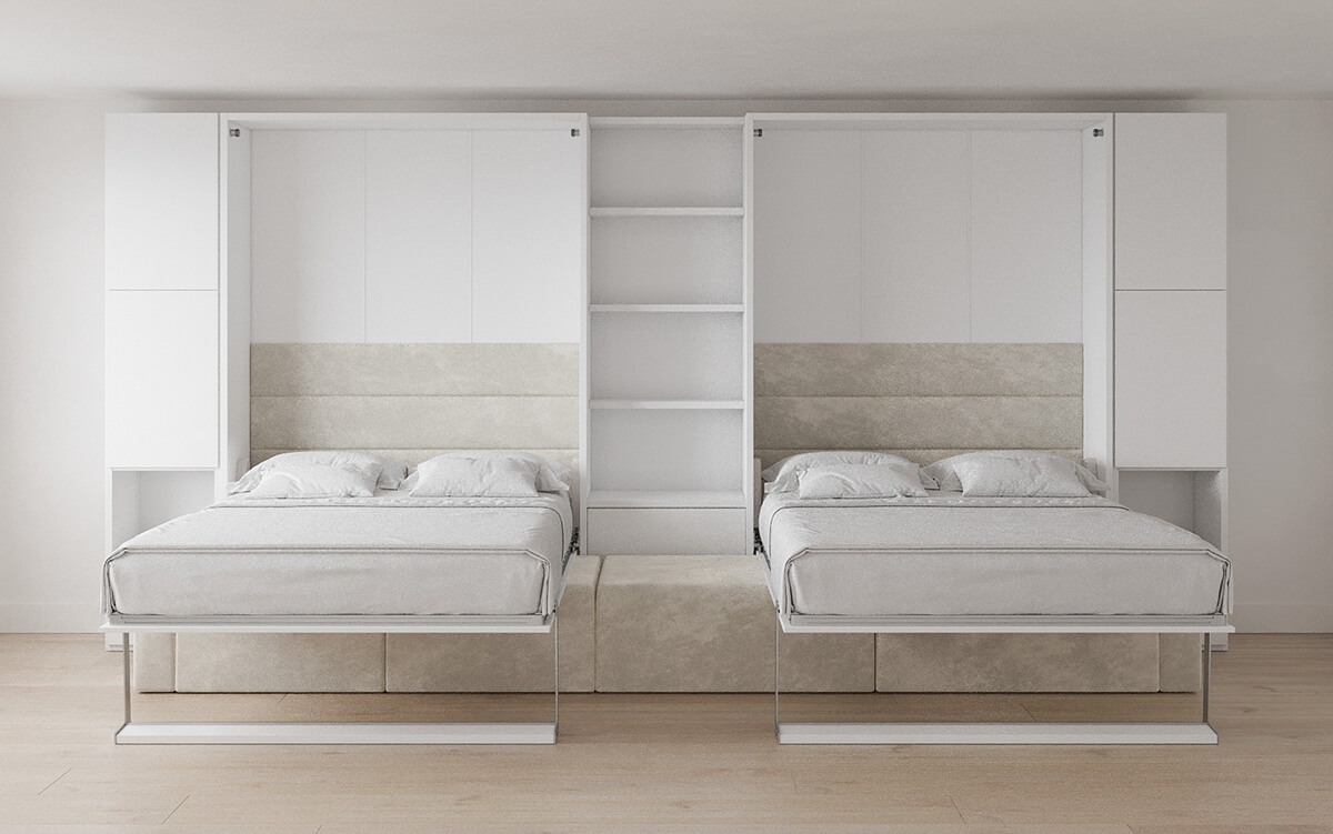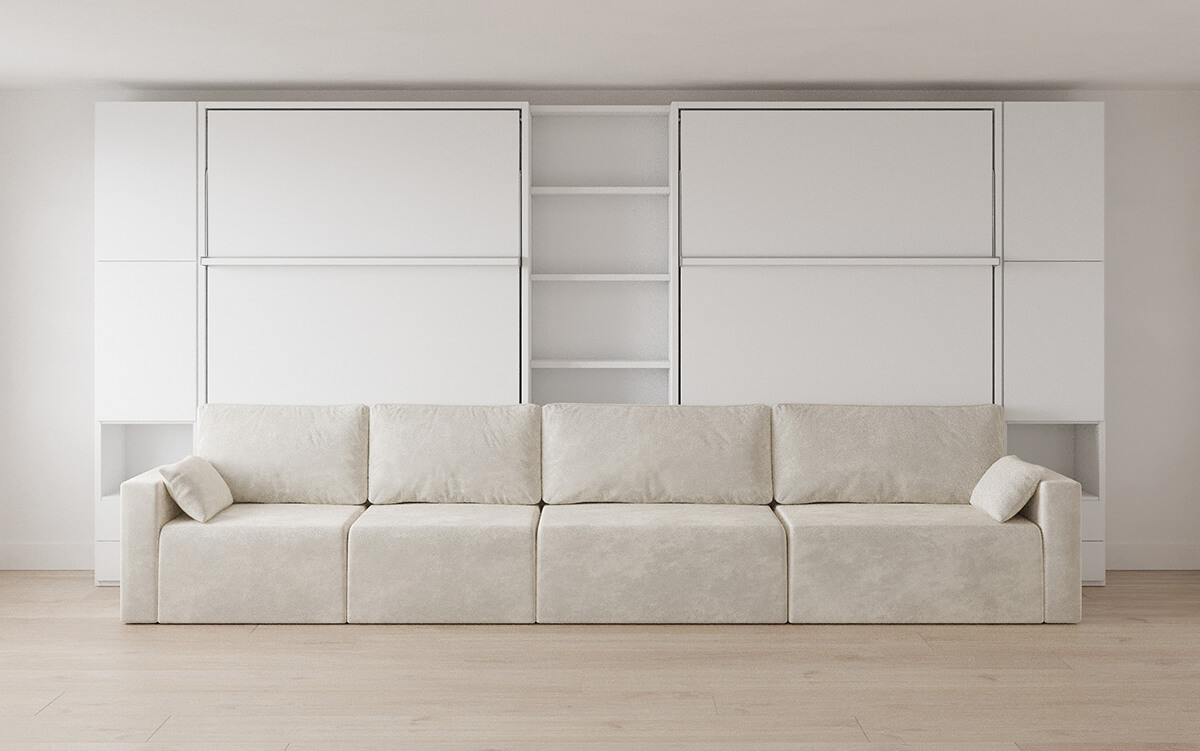 D - ROYAL Queen Wall Bed with Sectional Sofa, Wardrobe and Bookcase Set