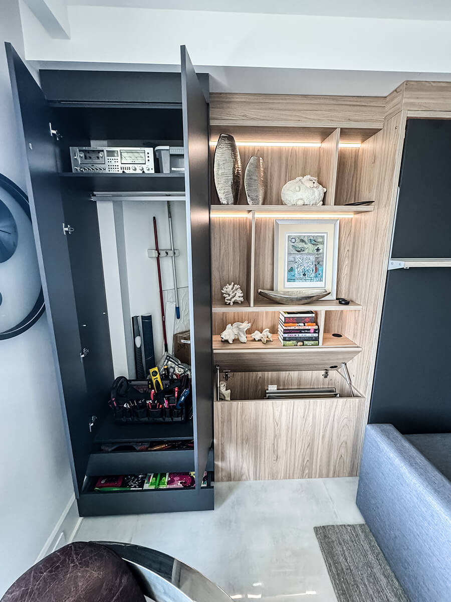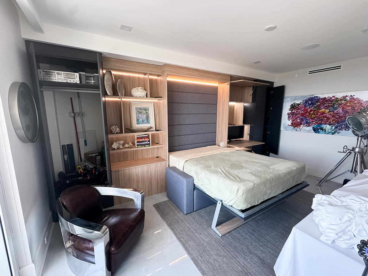 ROYAL Queen Wall Bed with Sectional Sofa, Wardrobes and Bookcases