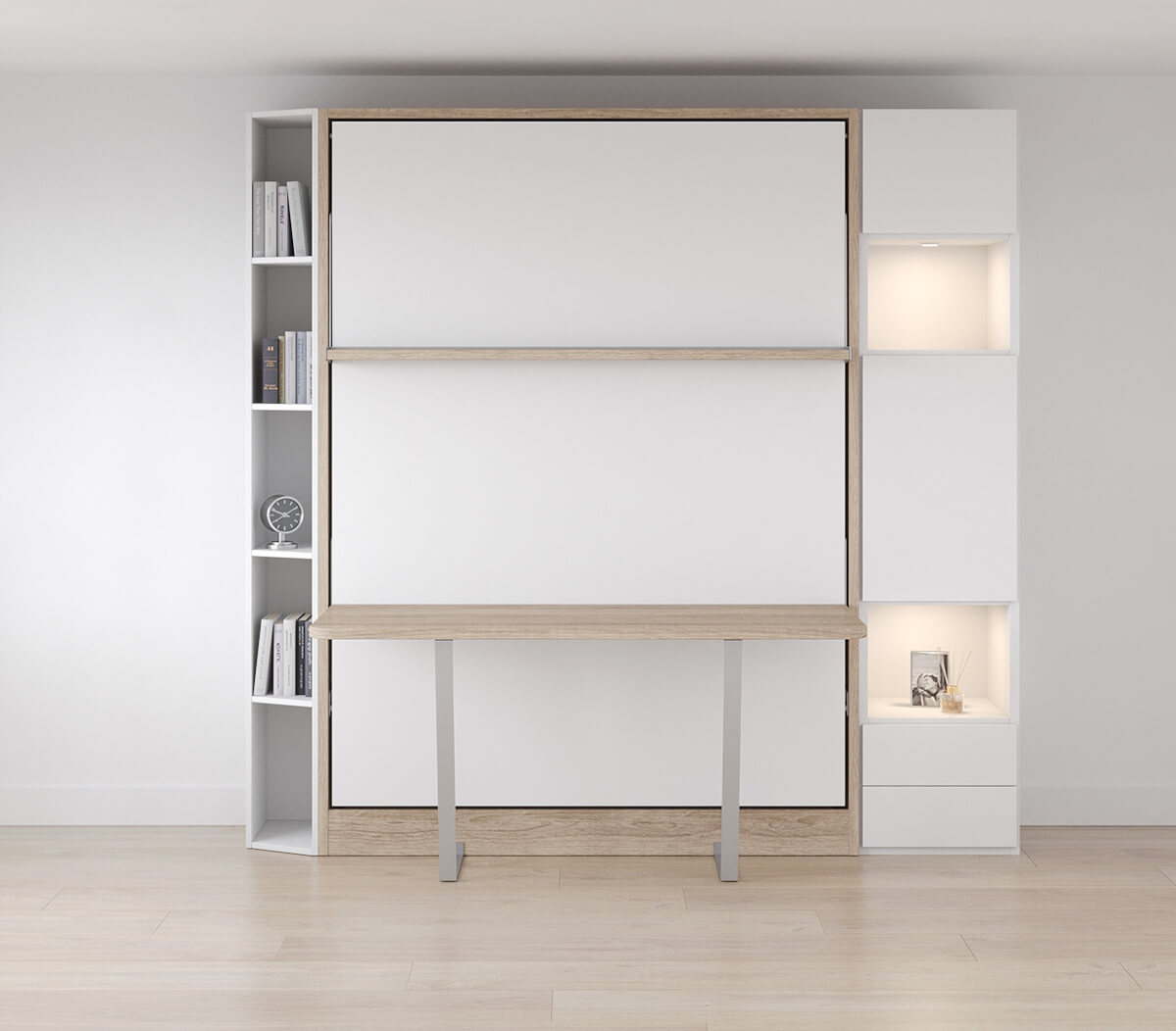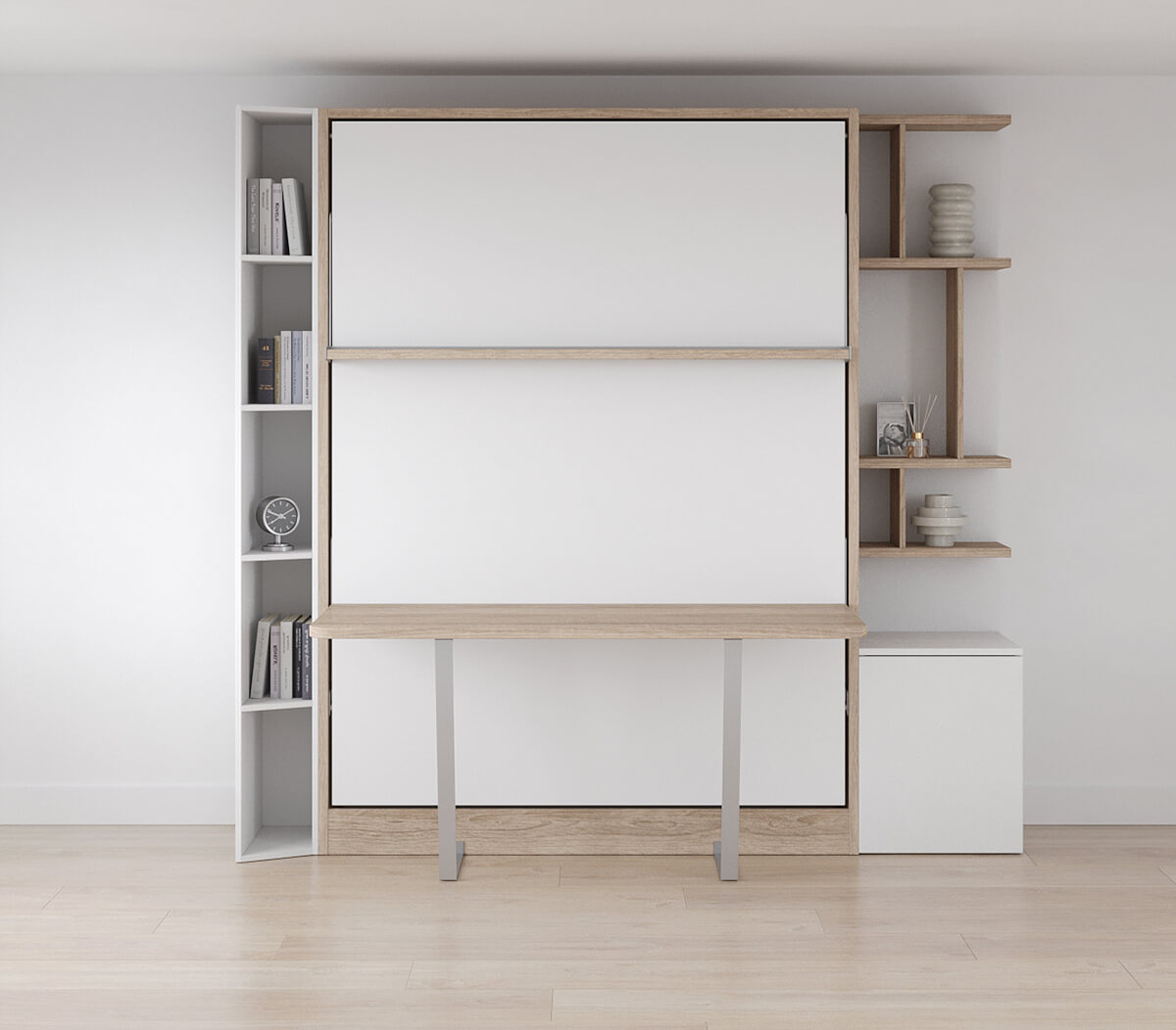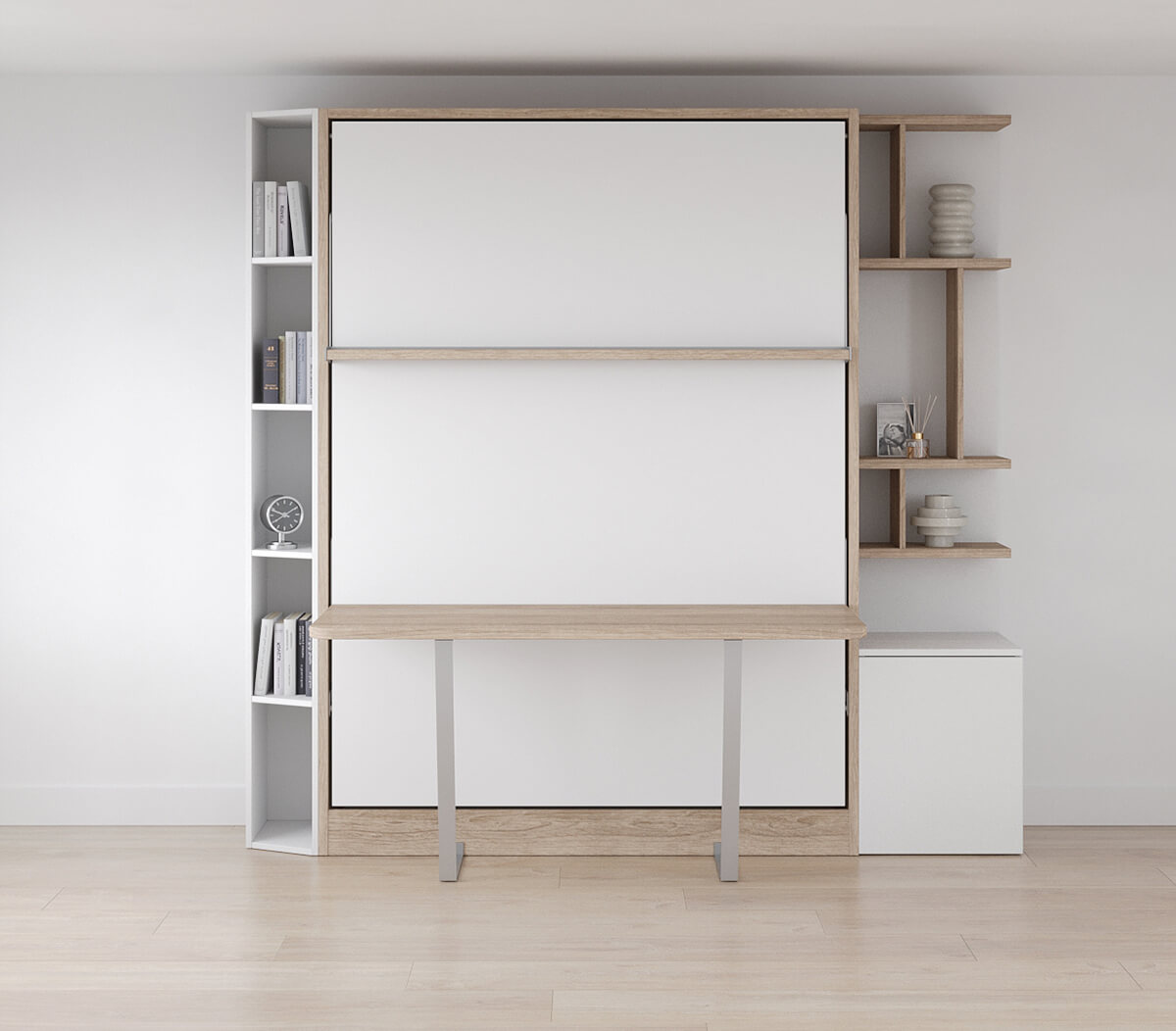 D - ROYAL Queen Wall Bed with Self Leveling Desk and Bookcase Set