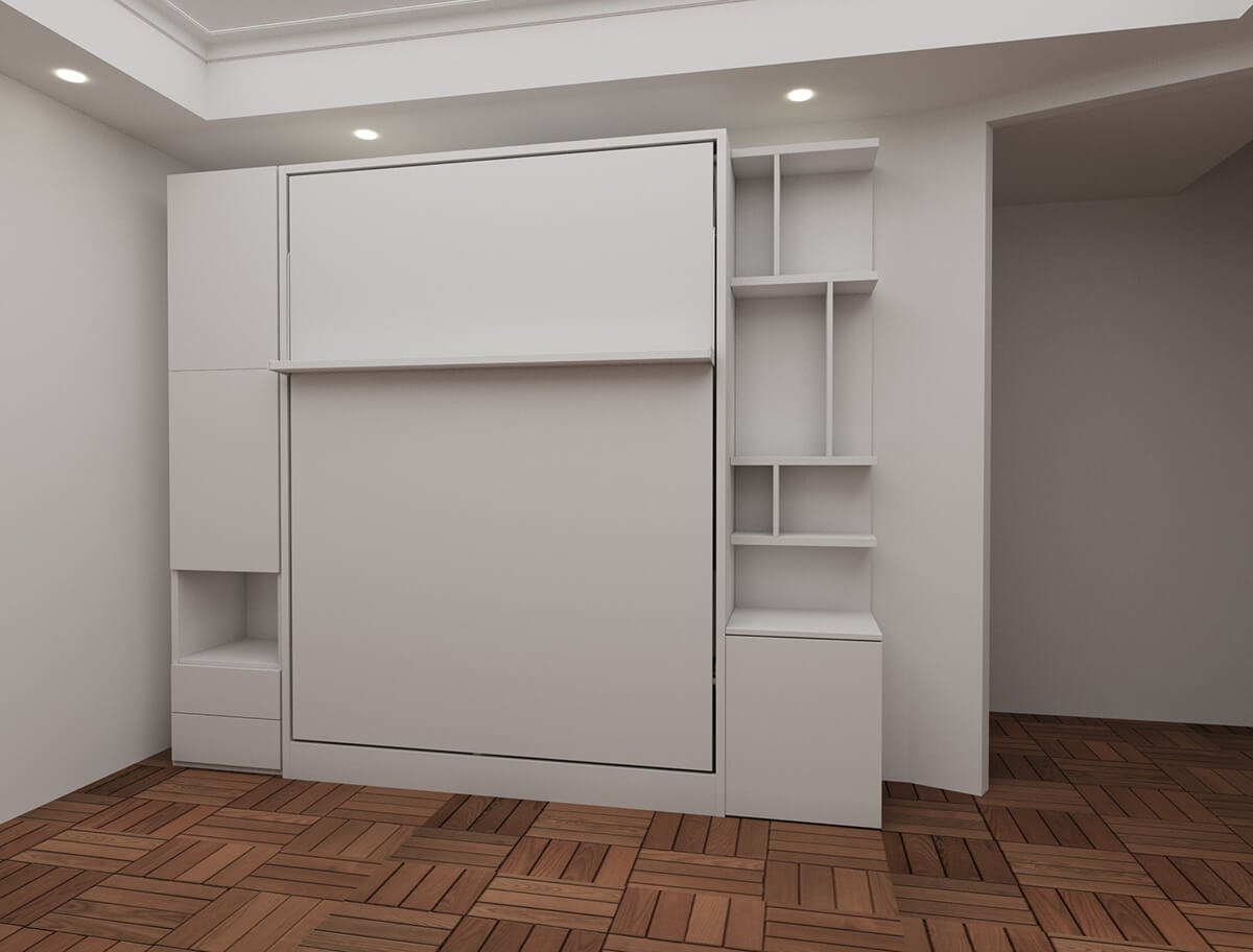 D - Royal Queen Wall Bed with Wardrobe and Bookcase