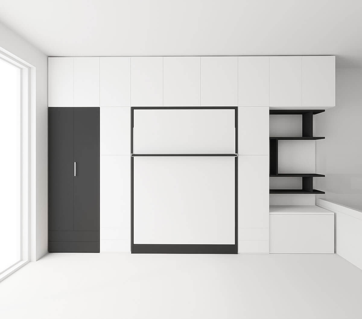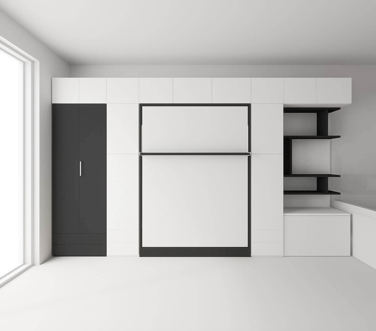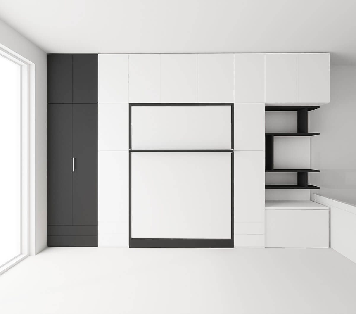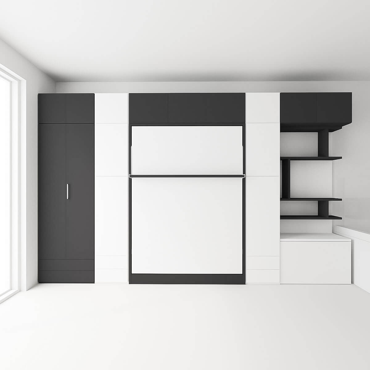 D - ROYAL Queen Wall Bed with Wardrobe and Bookcase Set