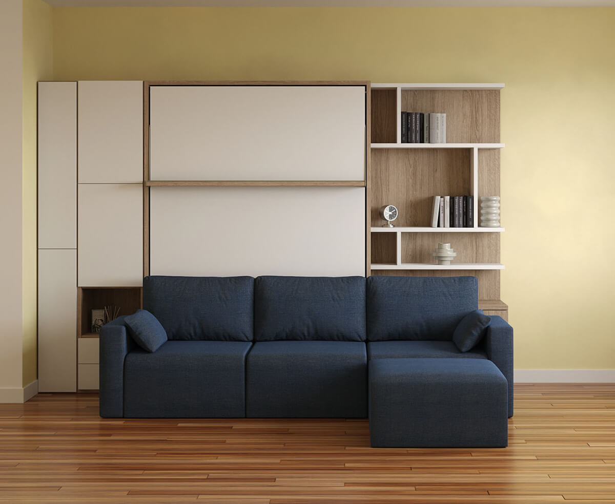 D - ROYAL Queen Wall Bed with Wardrobe and Bookcase Set