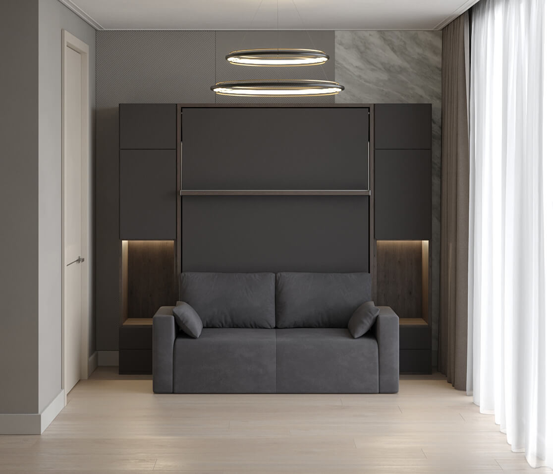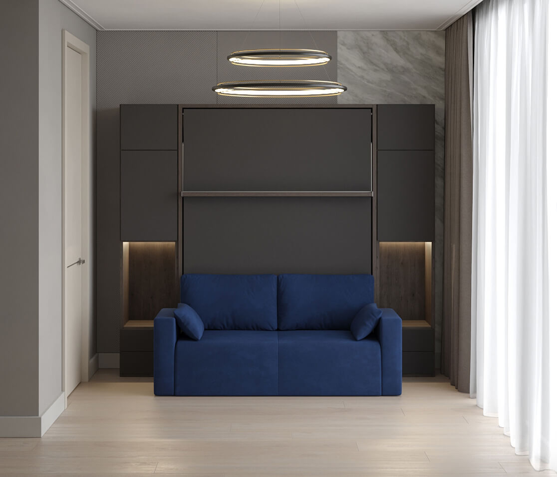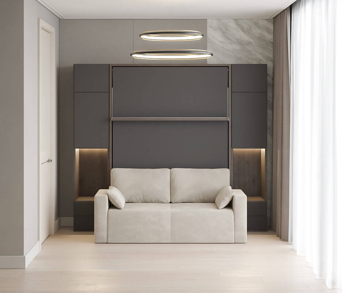 D - Royal Queen Wall Bed with Wardrobe and Sectional Sofa