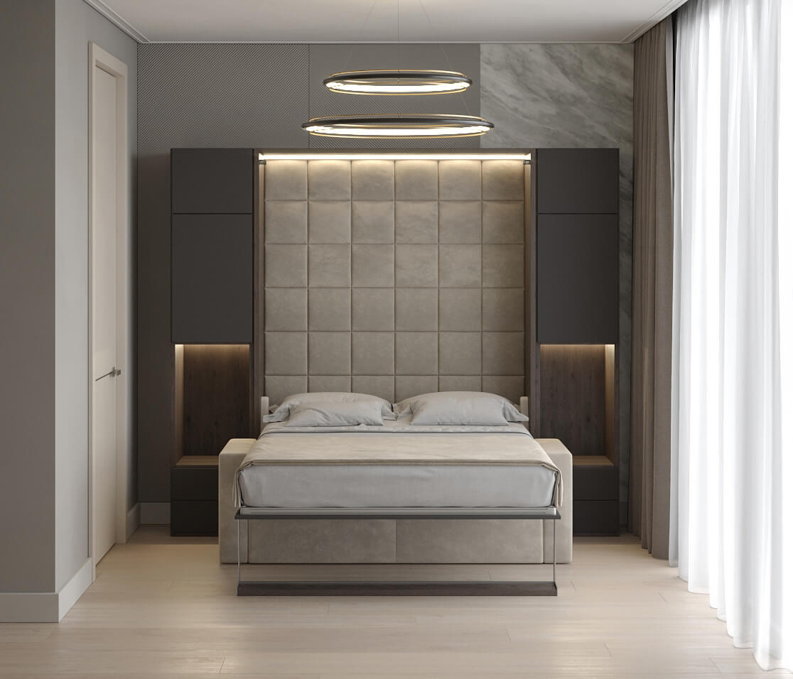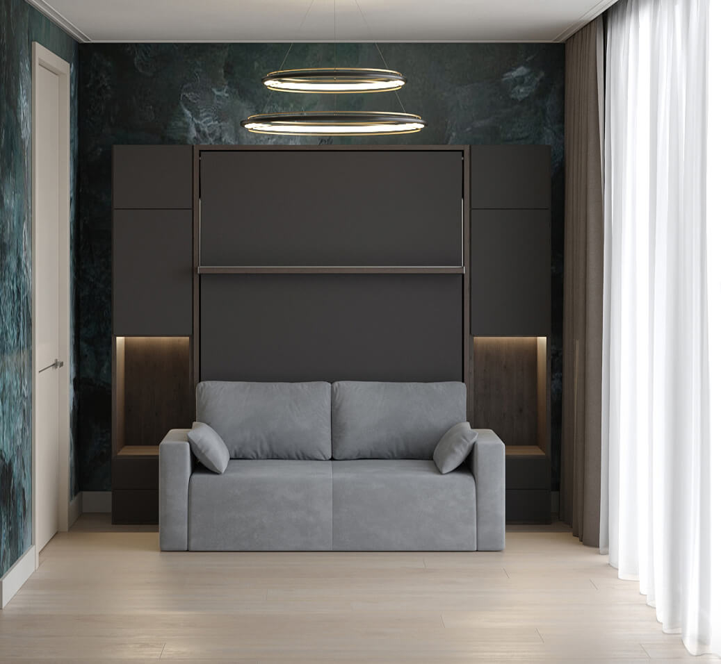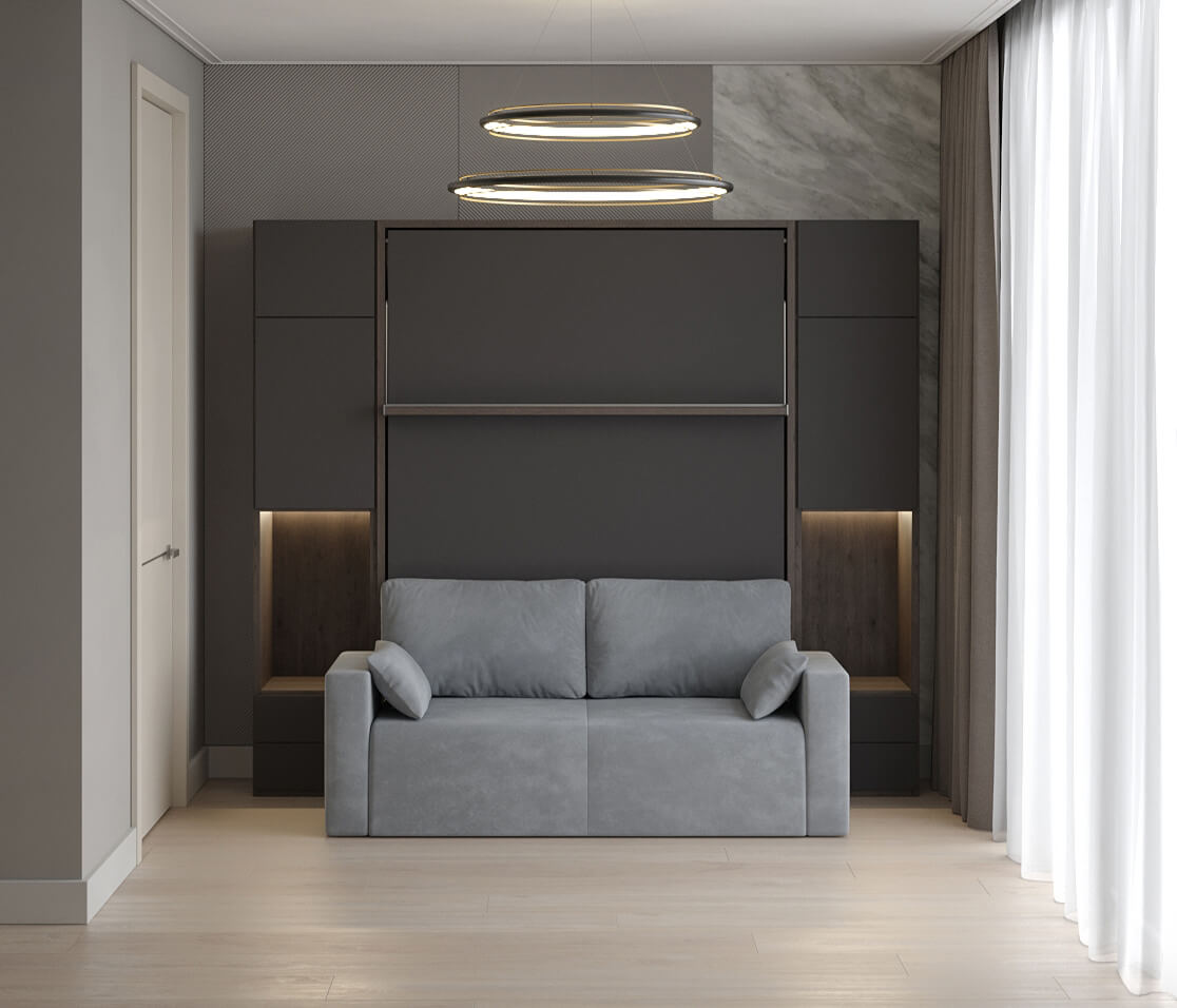 D - Royal Queen Wall Bed with Wardrobe and Sectional Sofa