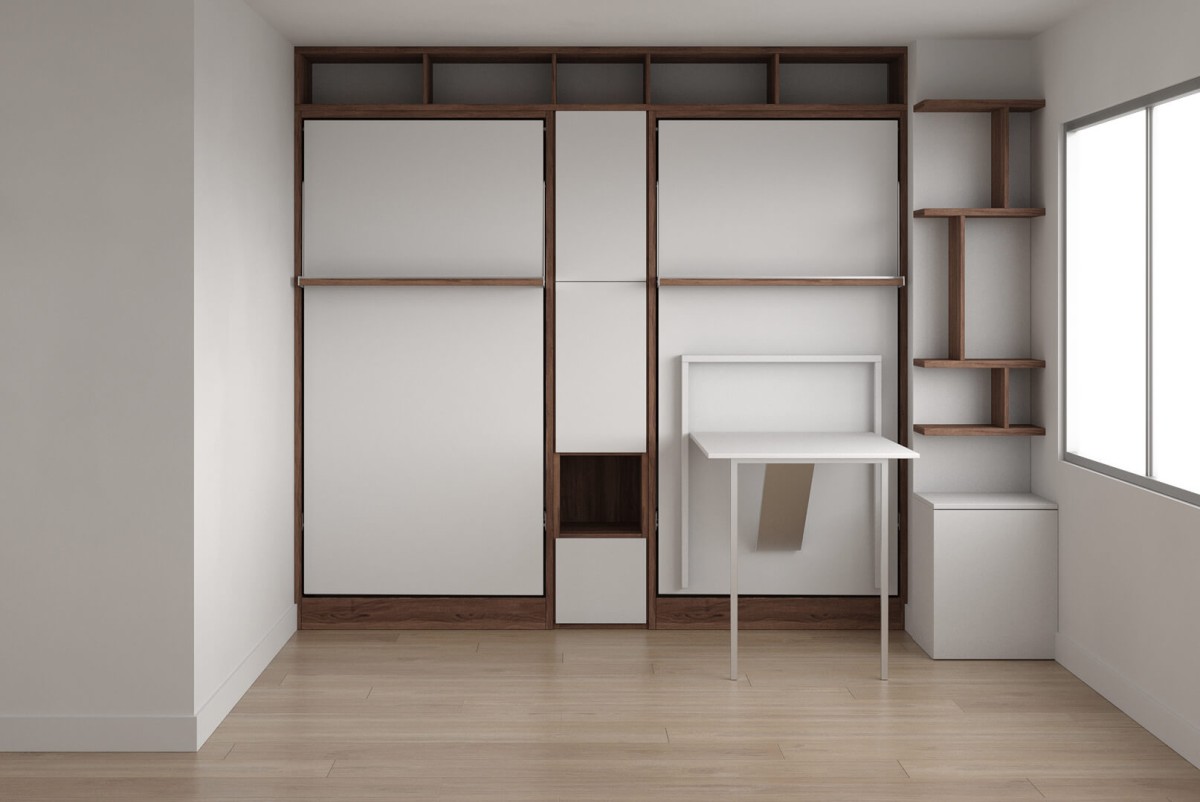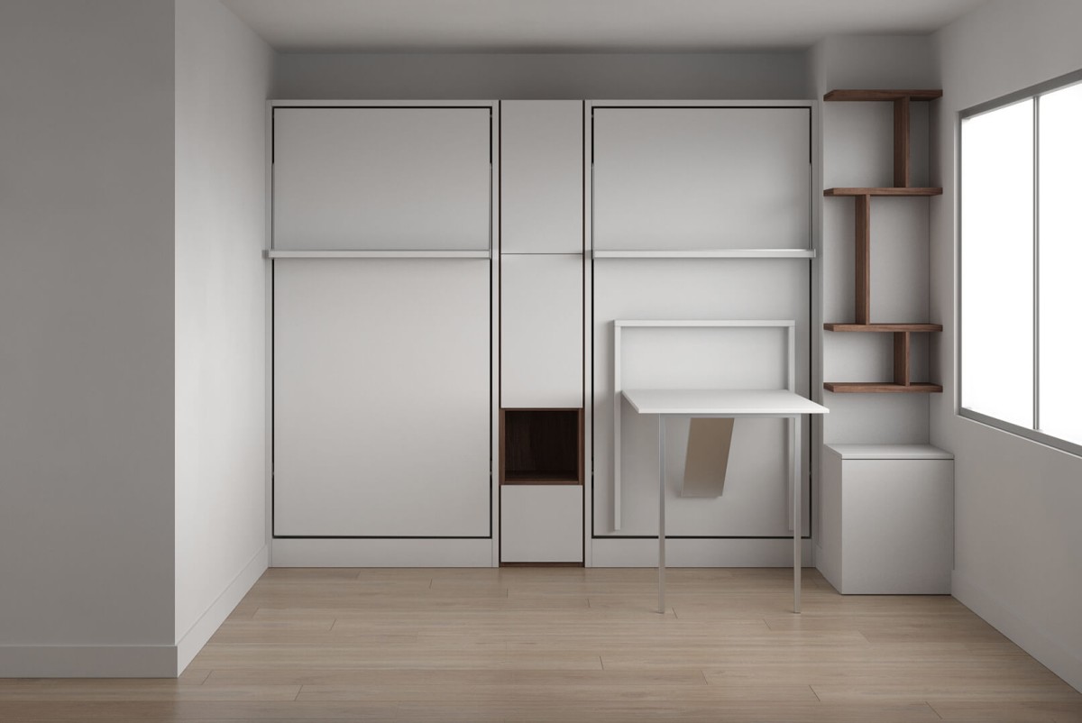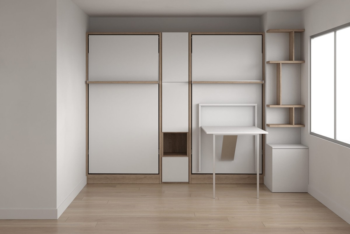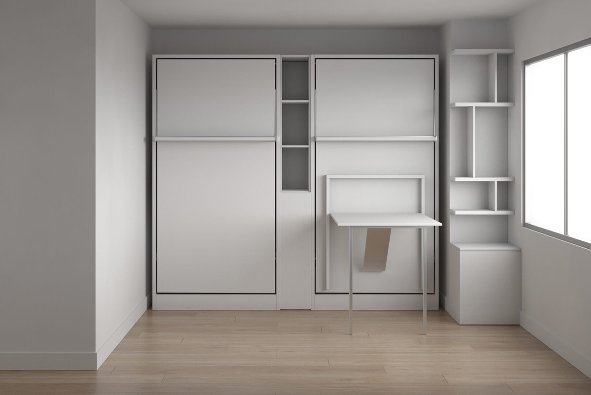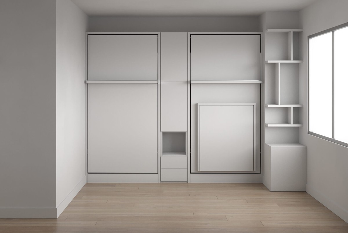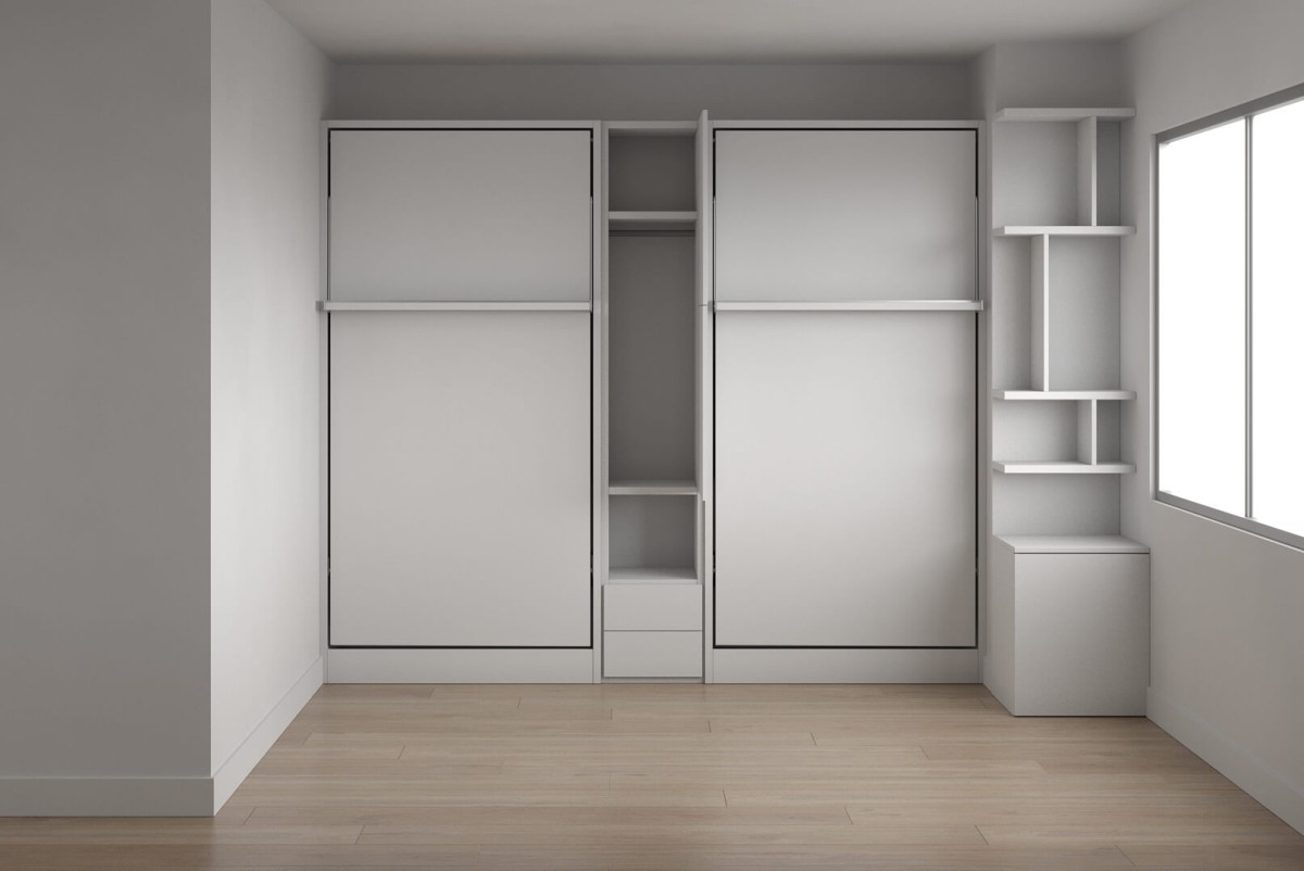 D - ROYAL Twin Wall Bed with Wardrobe and Bookcase Set