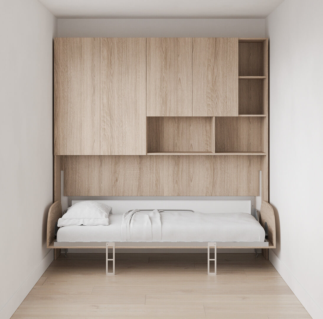 D - Simple Twin/Twin XL Murphy Wall Bed with Wardrobe and Bookcase Set