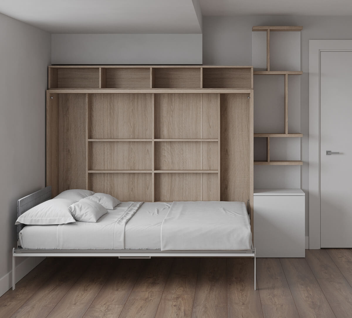 D - Spazio - Full Size Wall Bed with Bookcase Set