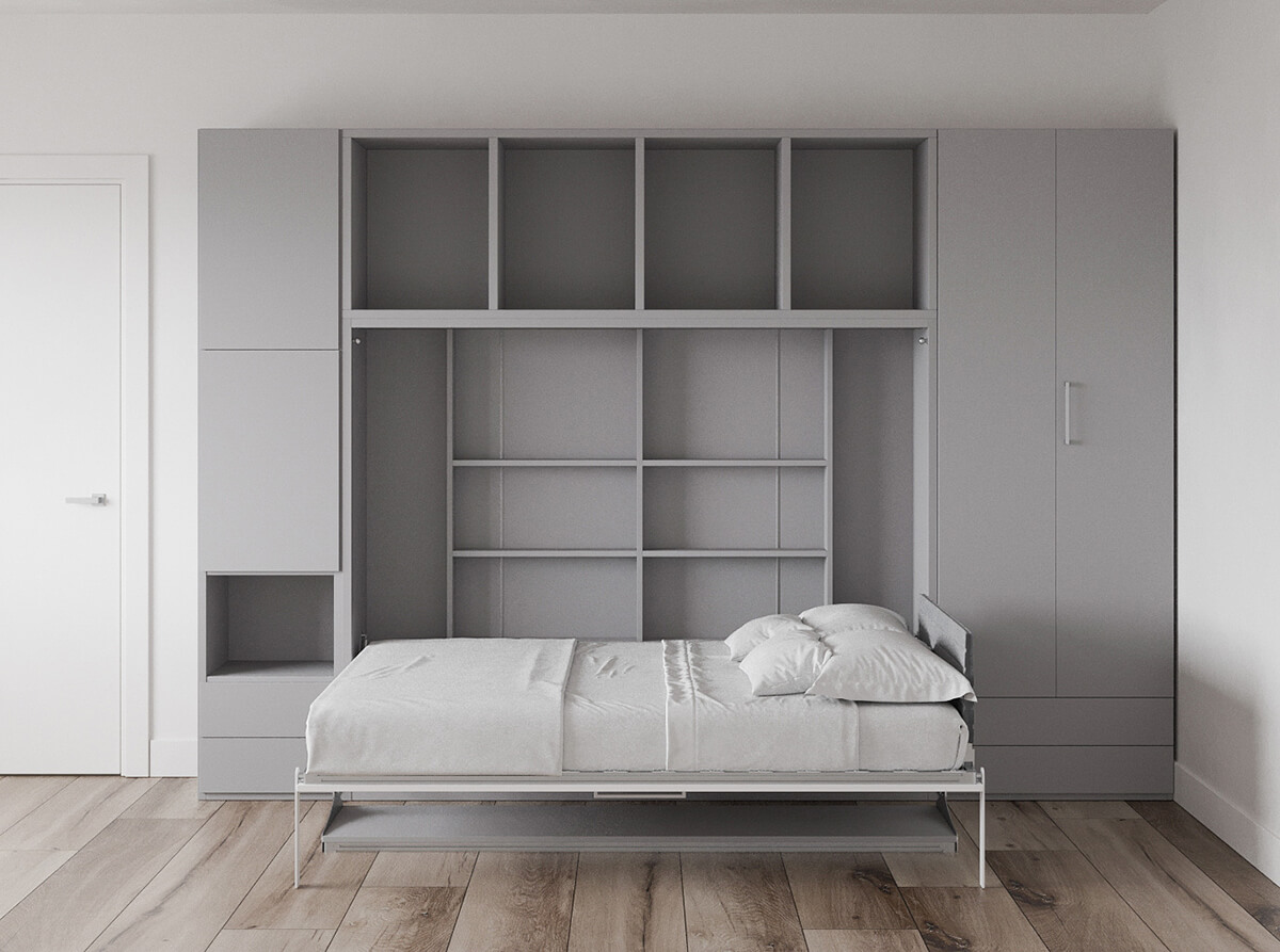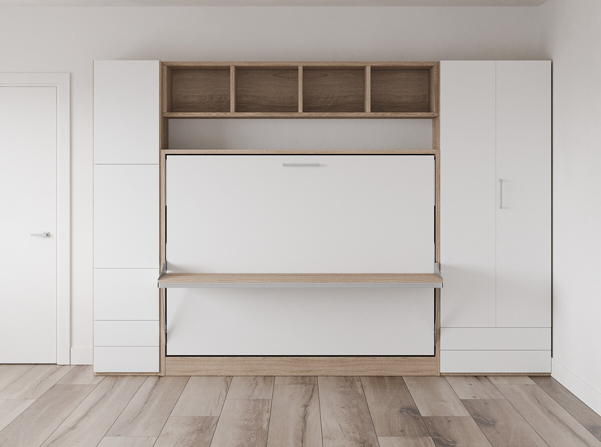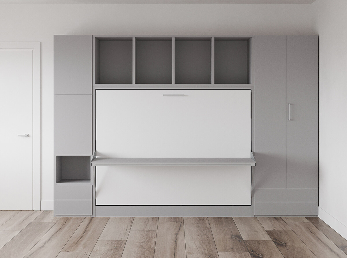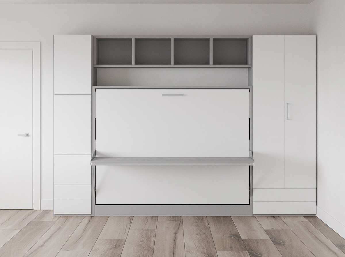 D - Spazio - Full Size Wall Bed with Desk and Wardrobe