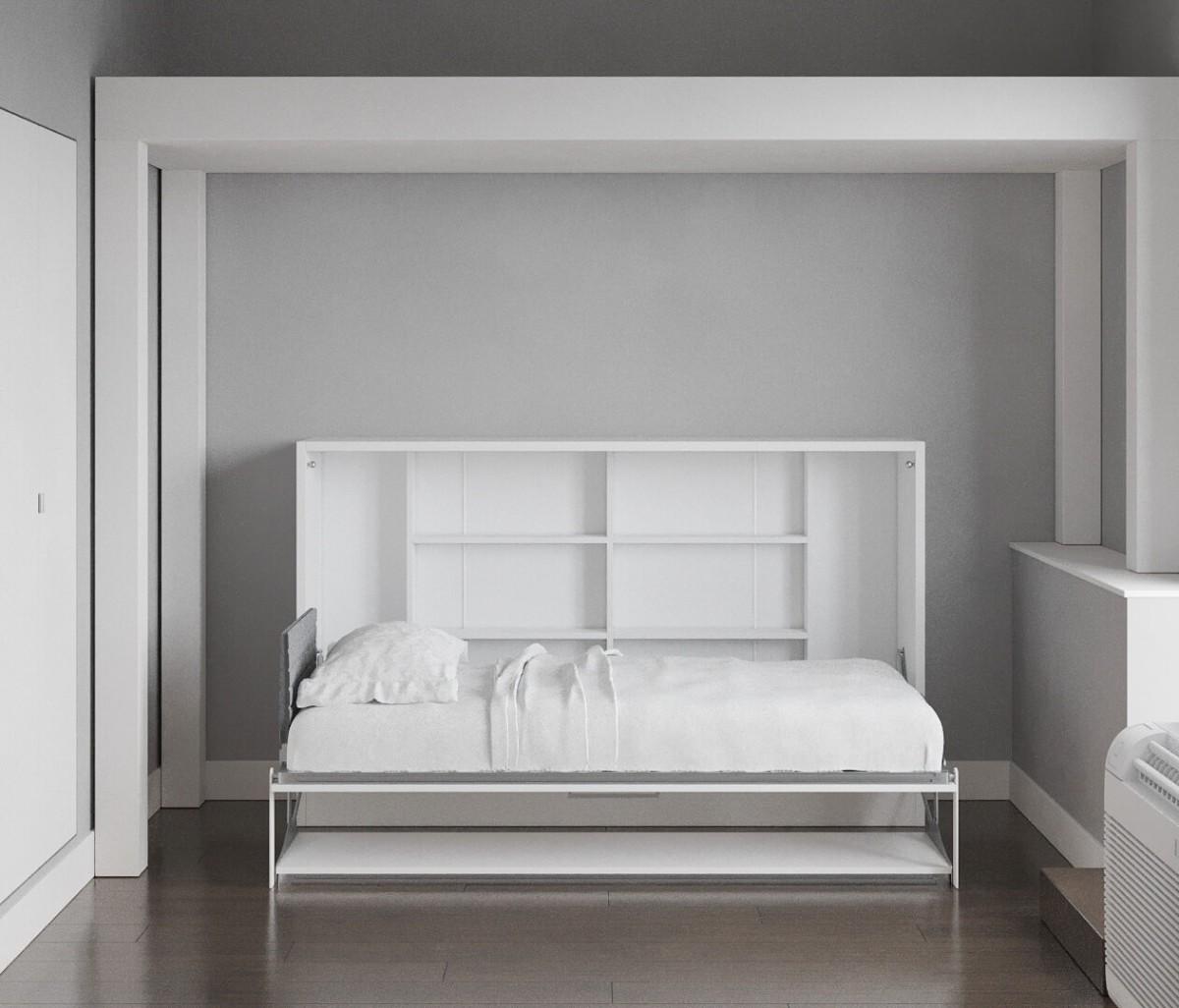 D - Spazio - Twin Size Wall Bed with Bookcase and Wardrobe