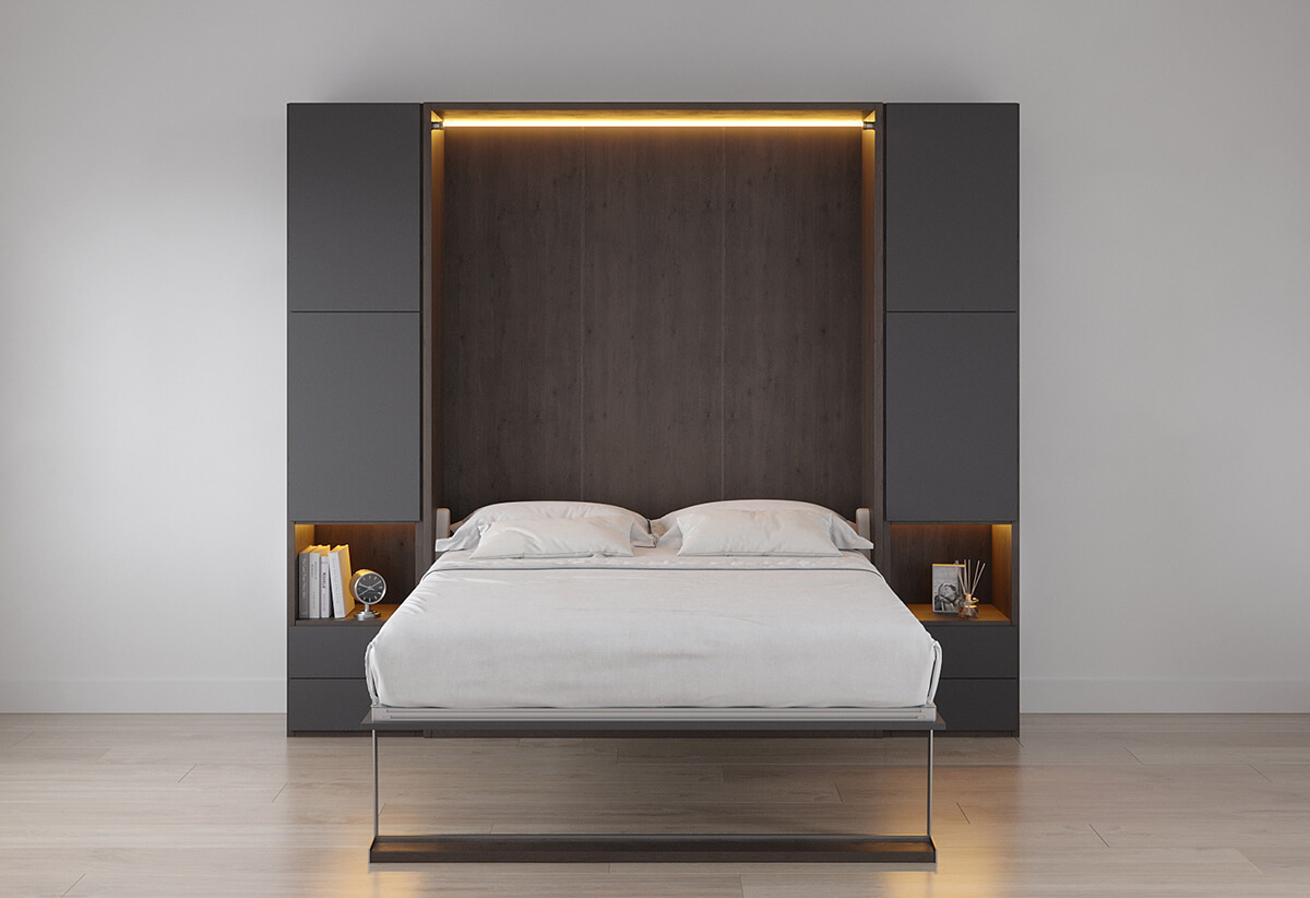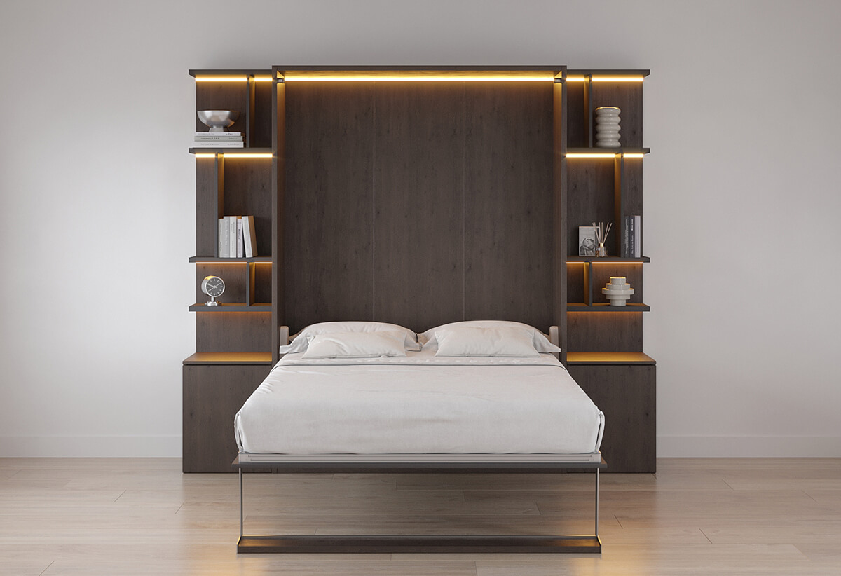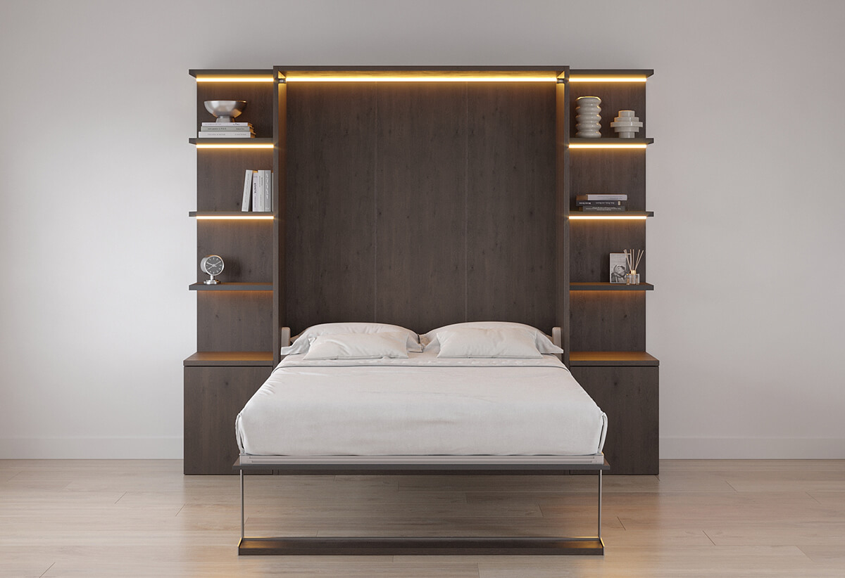 ROYAL Queen Wall Bed with Bookcase and Wardrobe