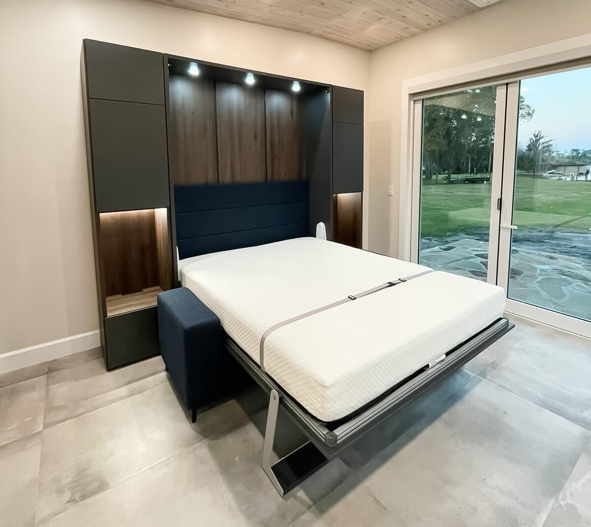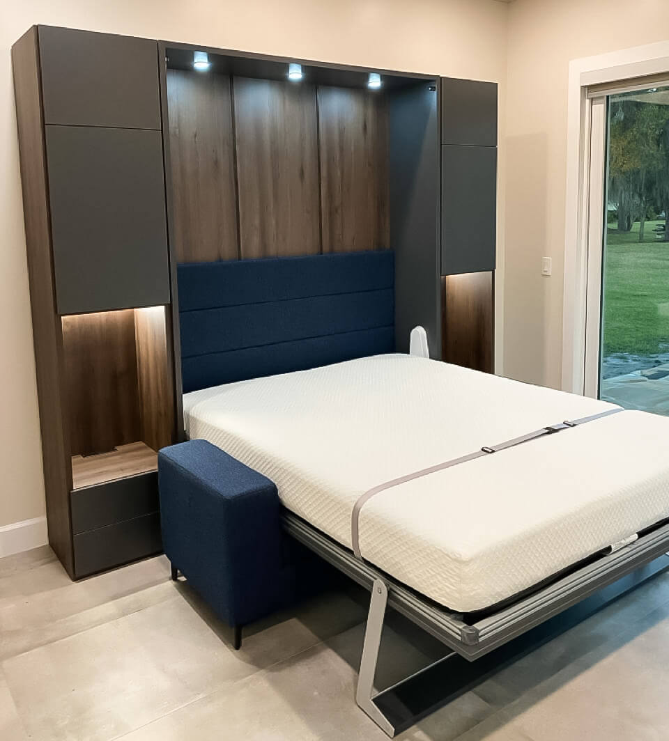 ROYAL Queen Wall Bed with Sectional Sofa and Bookcase Set